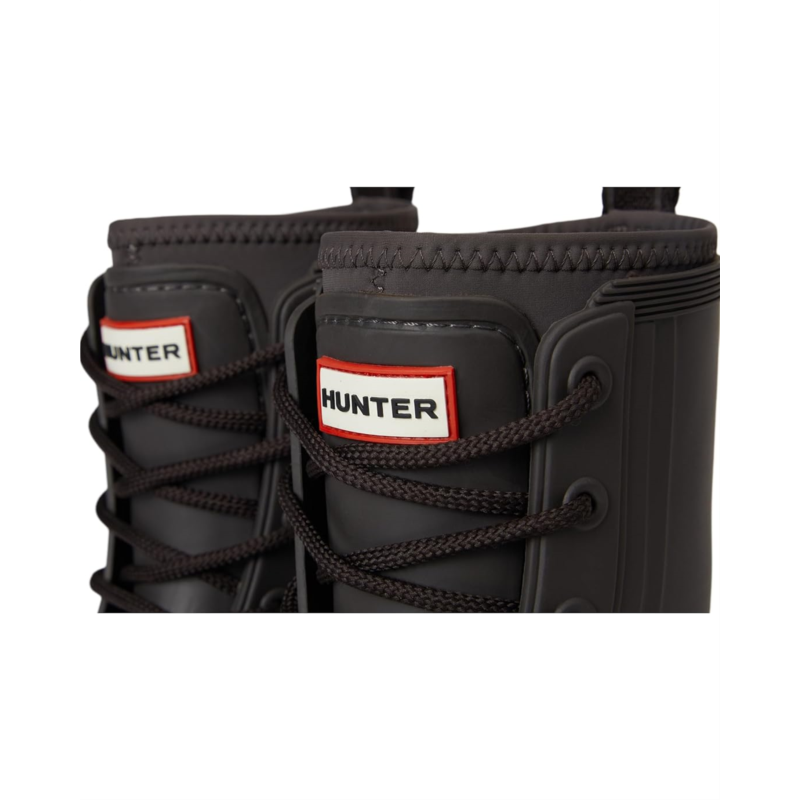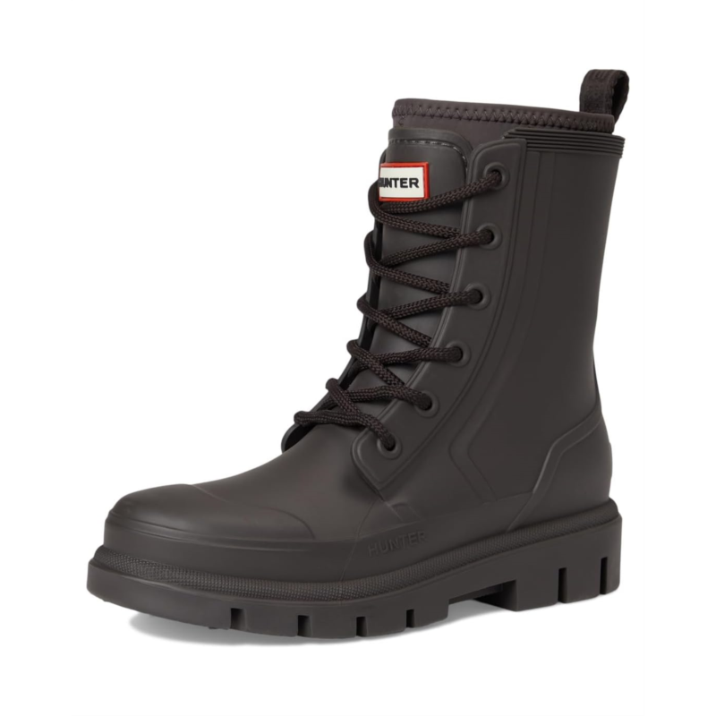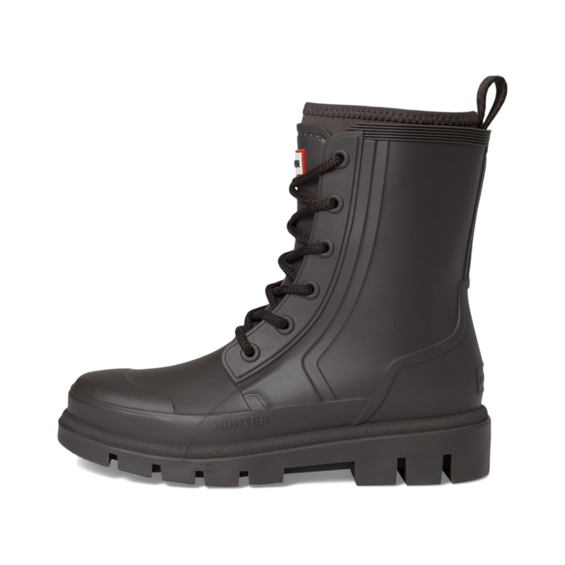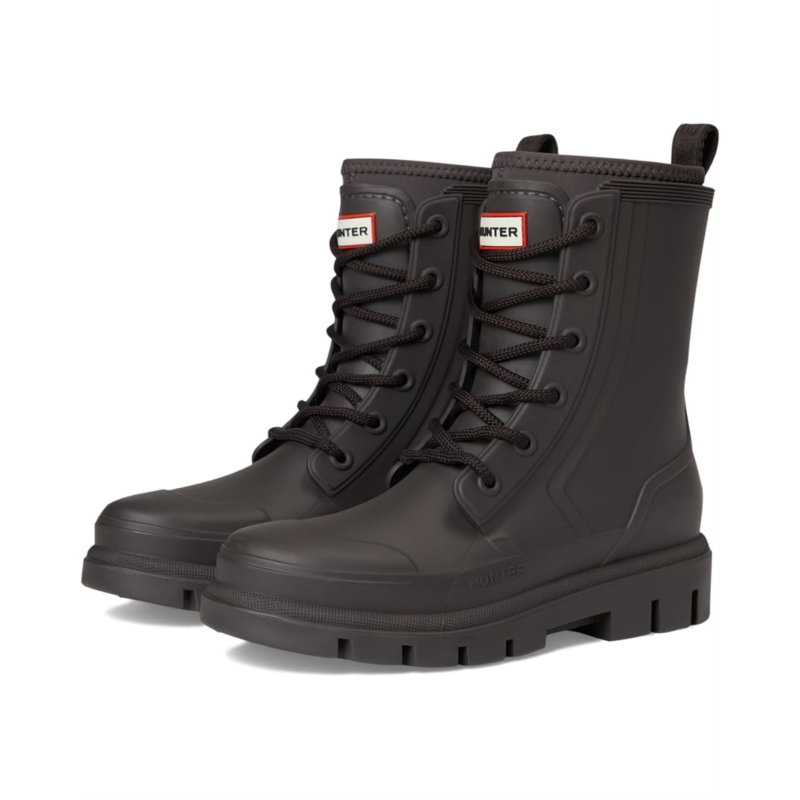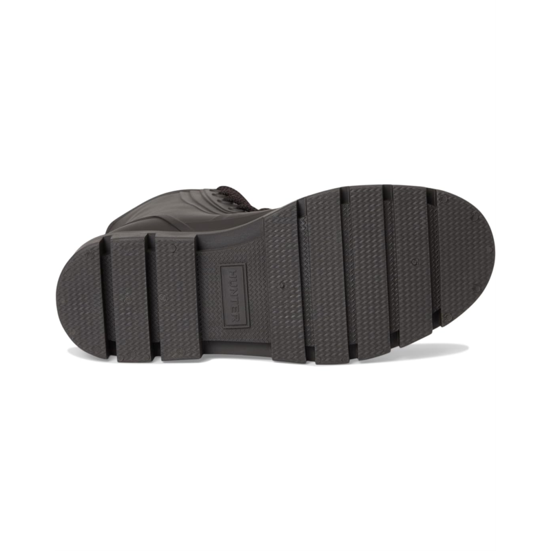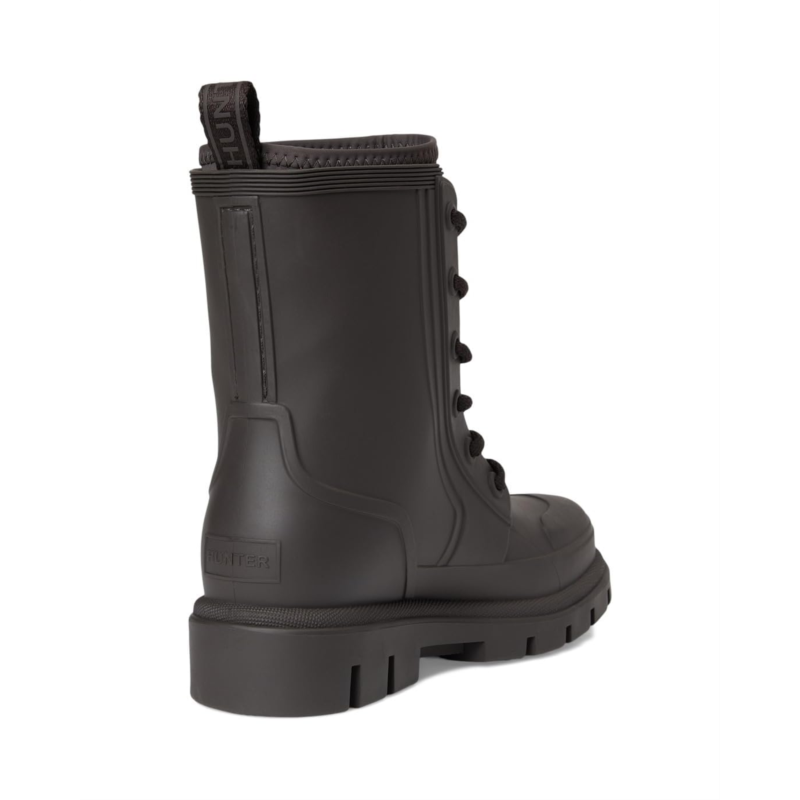 - The Hunter Diana Waterproof Mid Calf Lace Up Boot is your go-to for any weather. Crafted with a durable rubber upper and outsole, it ensures ultimate protection from the elements. The cozy polyester lining and insole offer unmatched comfort for all-day wear. Featuring a classic lace-up closure and mid-calf length, these boots provide a secure fit and versatile style. Perfect for those rainy days, the closed toe design keeps your feet dry and snug.
