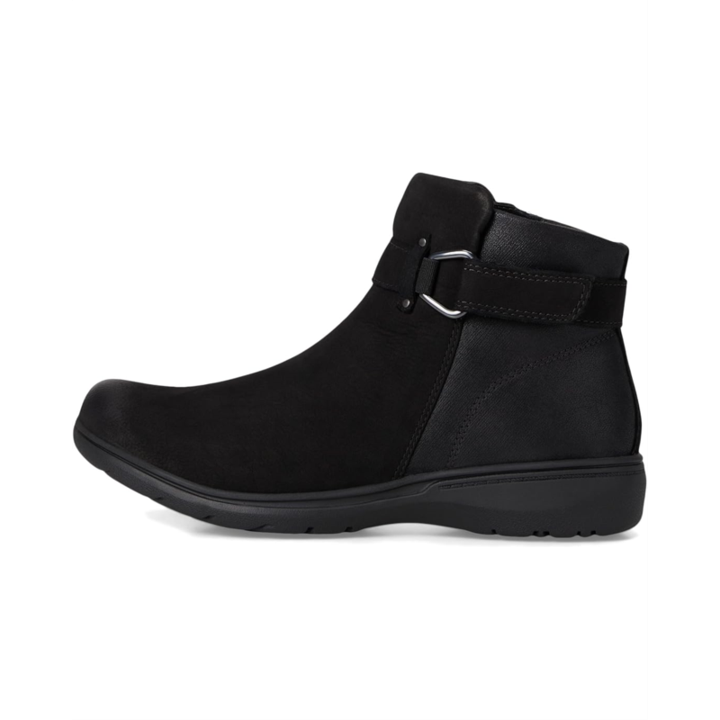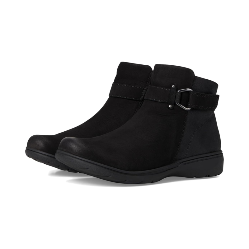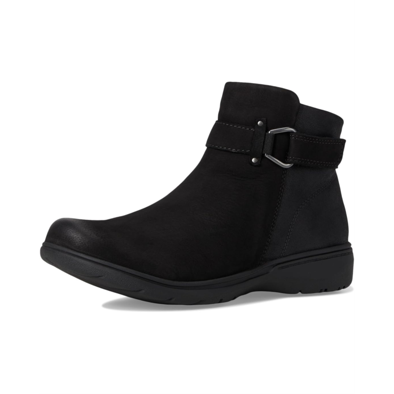 - The Clarks Carleigh Drift is a casual ankle boot crafted from premium, durable materials, designed to bring effortless style and comfort to your shoedrobe. Featuring subtle hardware detailing and an internal zip for easy entry, it also includes an adjustable riptape strap for a secure, customized fit. Underfoot, the flexible thermoplastic rubber outsole ensures reliable traction, while Clarks signature Ultimate Comfort foam footbed delivers plush cushioning that lasts all day.