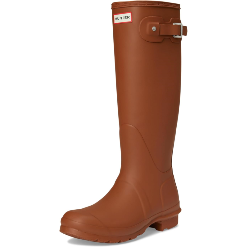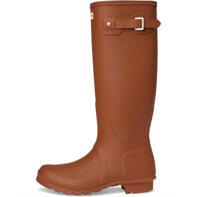 - 100% waterproof, the Hunter Original Tall Boots are made with a rubber upper that features an adjustable buckle closure. The polyester insole and lining keep your feet comfortable. These pull-on boots are an ideal choice for your rainy adventures.