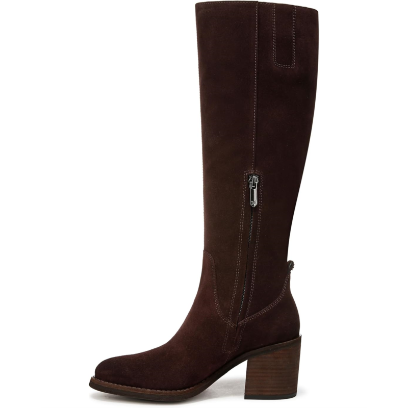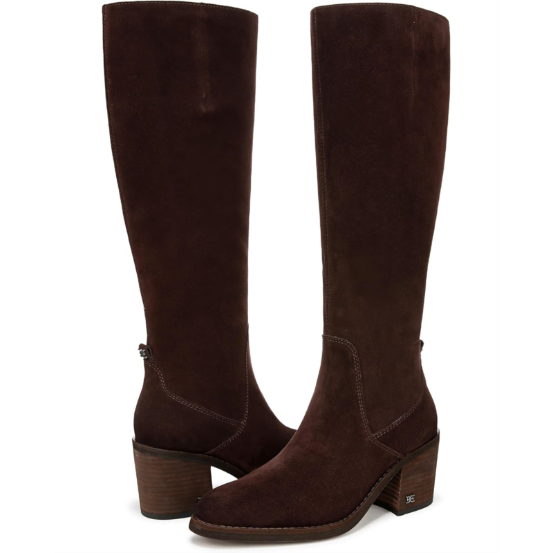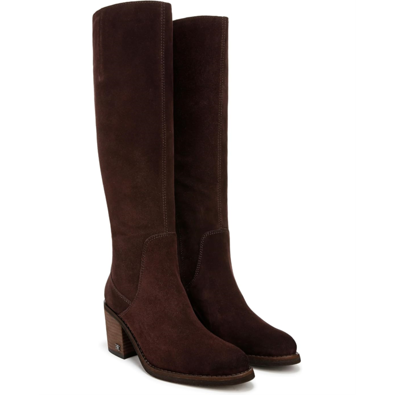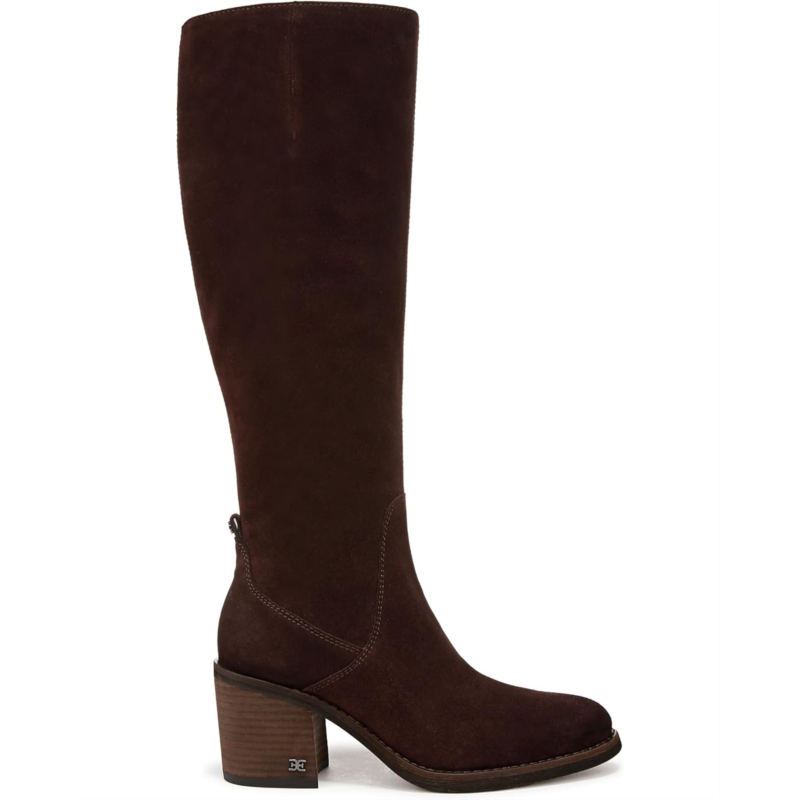 - Biker vibes meets city chic with the Sam Edelman Soyer, a polished tall knee-high boot featuring almond toe and chunky block heel. The pull-on footwear has leather upper construction with polyurethane lining and insole for all-day comfort.