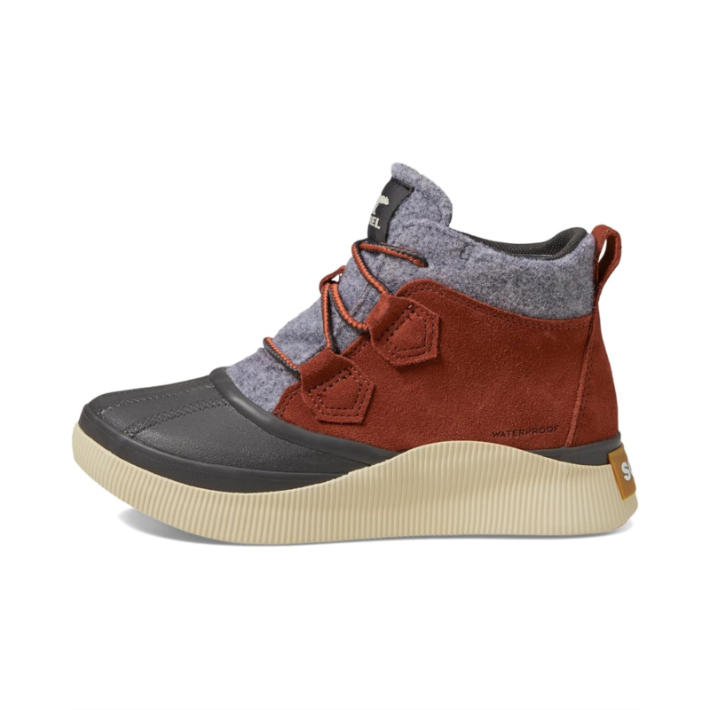 - Waterproof full grain leather and suede upper (CW 010, 209, 243, 264 & 355) .Waterproof felt and suede upper. (CW 011, 244 & 838). Heel pull tab. Lace closure. Textile lining. Waterproof bootie construction. Waterproof vulcanized rubber shell.