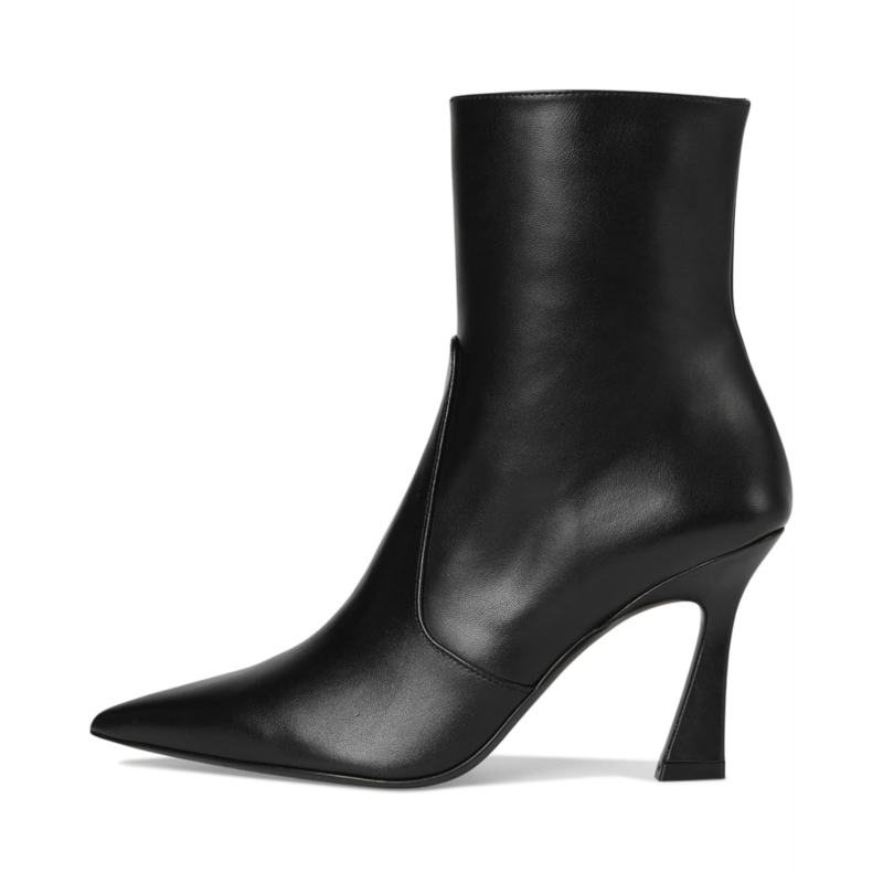 - Make a fashionable statement at the next party wearing the sleek and smart Stuart Weitzman Vinnie Zip Bootie 85. The ankle-high boots are designed in a pointed toe silhouette with a tall stiletto heel for that added height. These come crafted with a leather upper, leather lining, and a leather insole. The zipper closure on the side allows easy on/off.