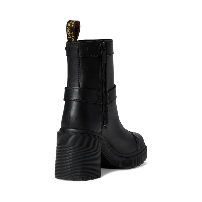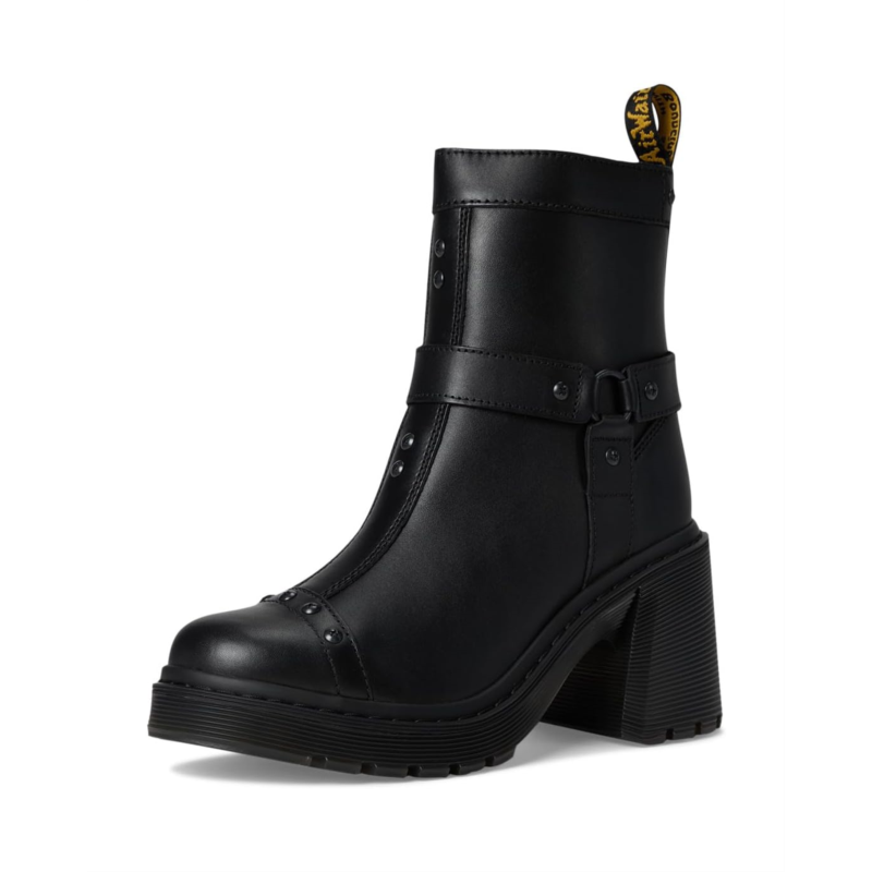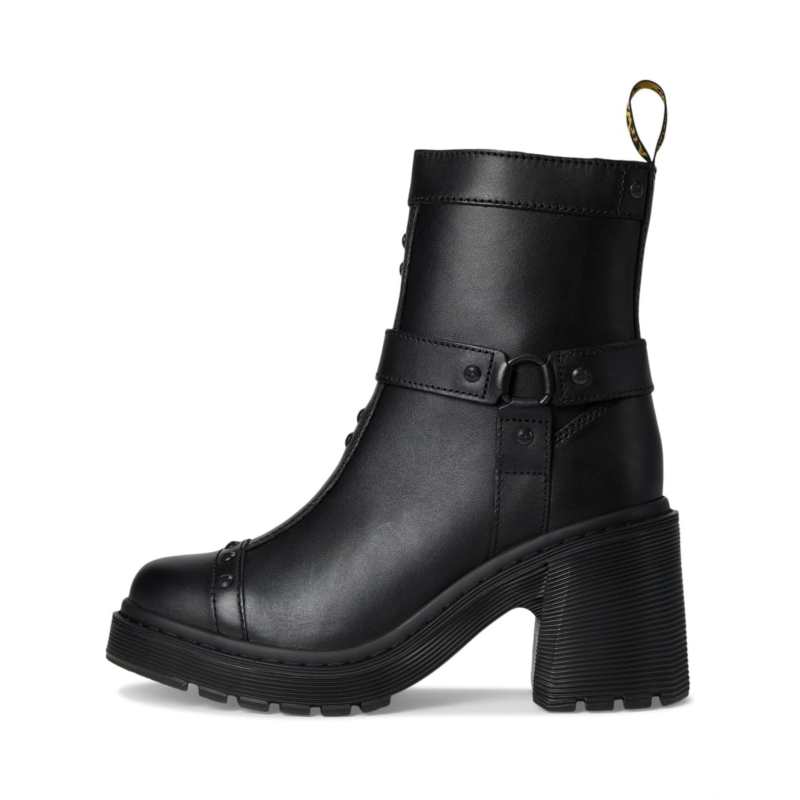 - Heeled, harnessed and headstrong, the Dr. Martens Spence Harness boot embodies DMs relentless attention to detail and craft. Built with Sendal, a smooth yet rugged leather, the boot is upgraded with a wraparound harness for extra edge and an additional leather placement on the toe that exaggerates the silhouette''s shape. Monochrome stitching runs across the upper and welt, and signature DM''s detailing includes a scripted heel loop and branded zip. The boot is stacked tall on a black grooved sole and towering flared heel for maximum impact.
