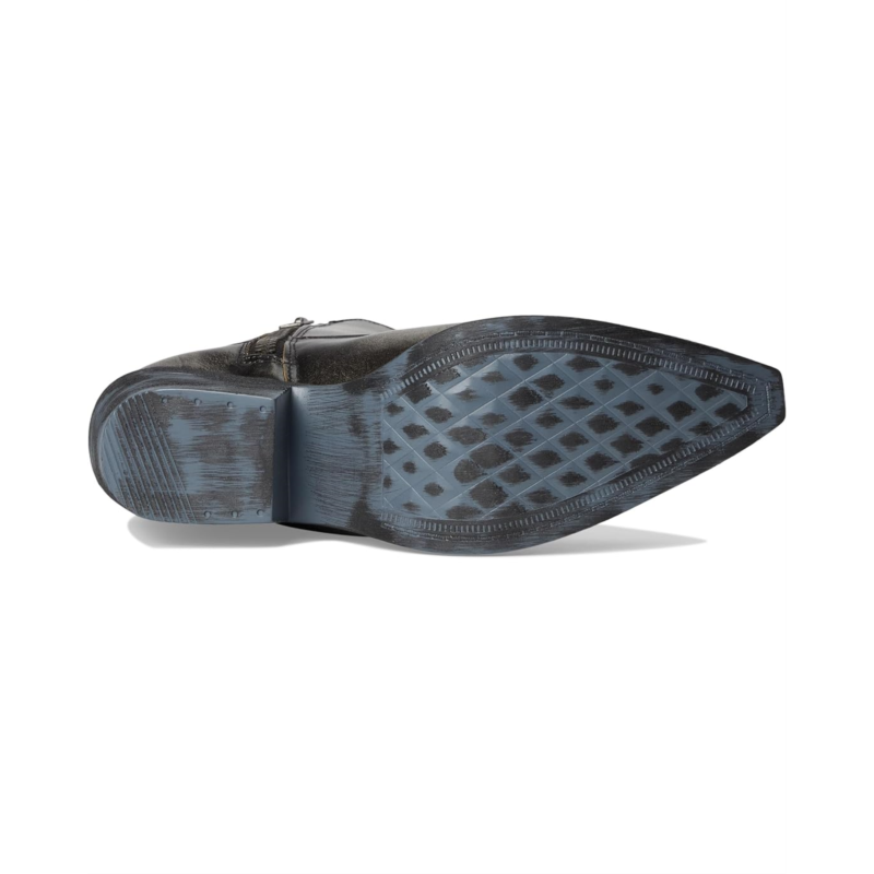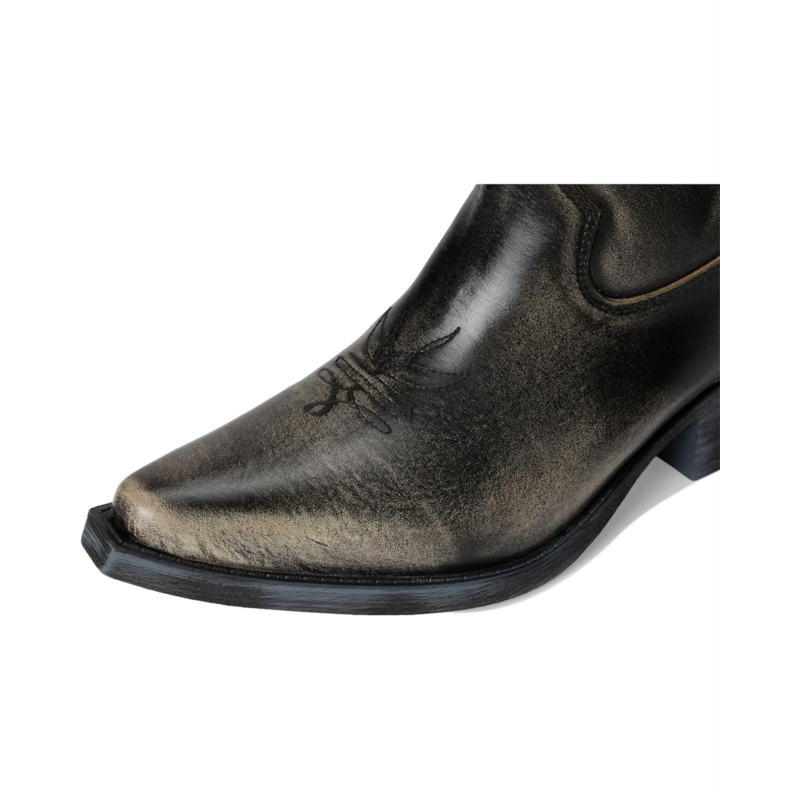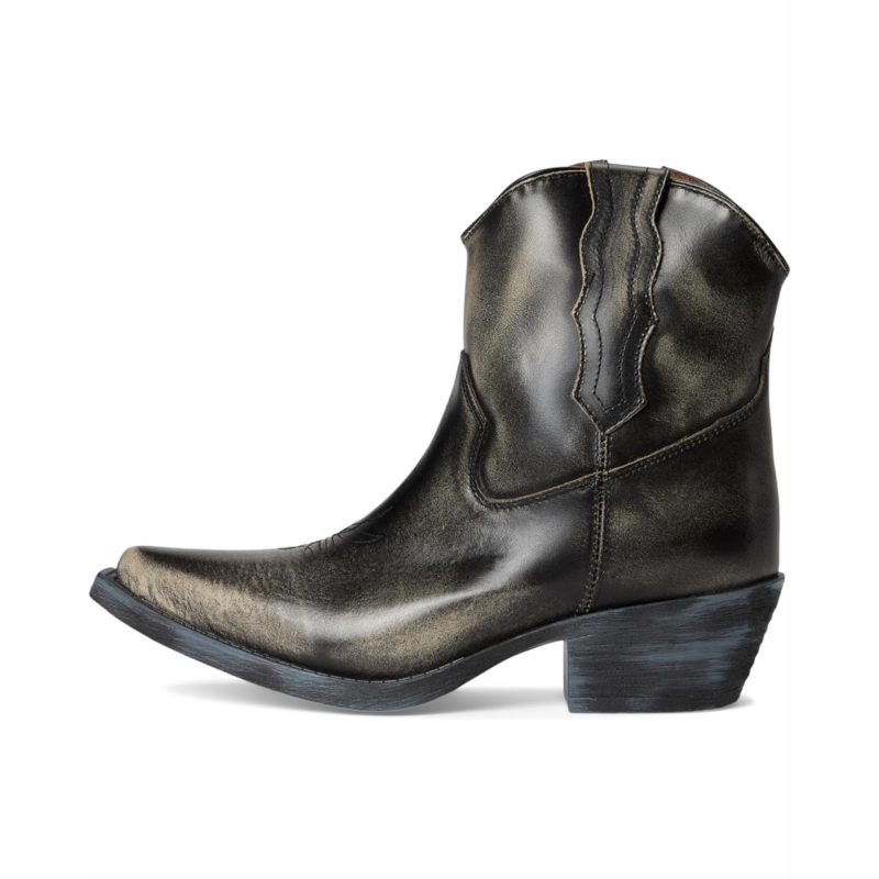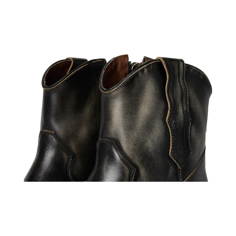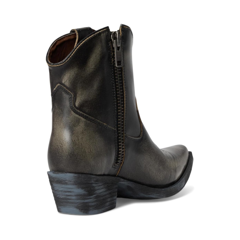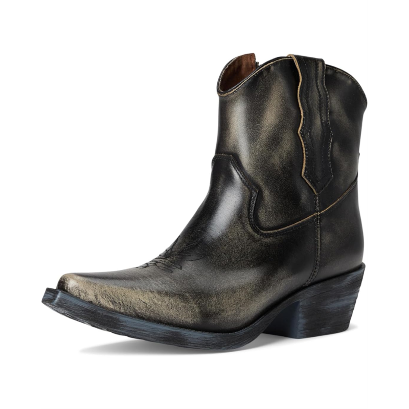 - The Corral Boots Q7039 is crafted with distressed leather upper and intricate embroidery. Featuring a classic J toe and a cowboy fashion heel for timeless appeal, this ankle-high footwear features a zippered side closure.
