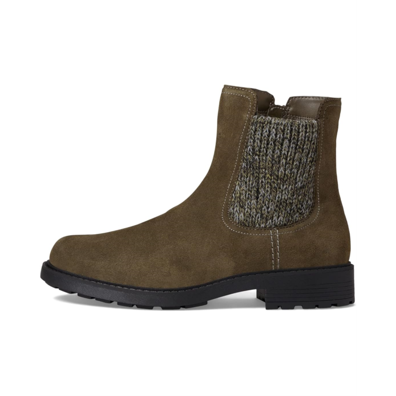 - Walk comfortably in the Clarks Opal Sky Boots that feature a stretchable knit paneling on the side for easy on and off.