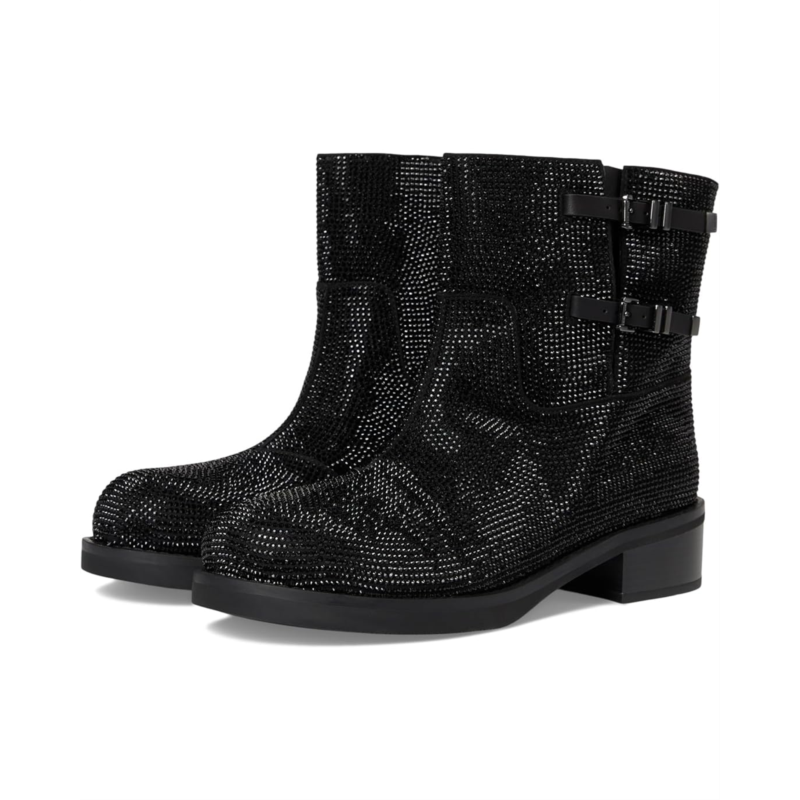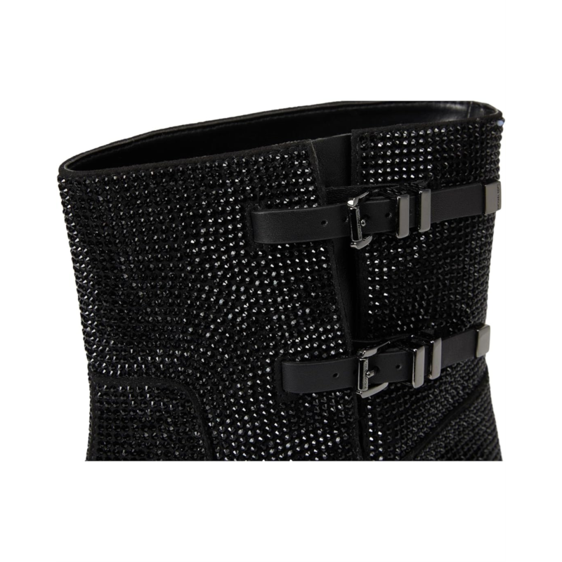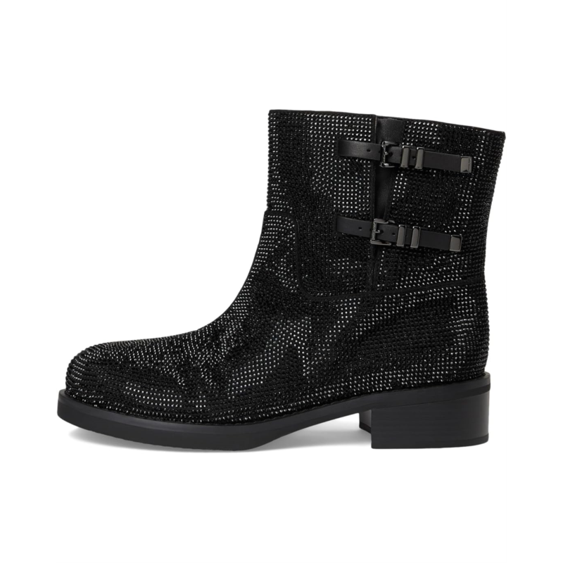 - The MICHAEL Michael Kors Darrington Flat Bootie is a moto-inspired bootie that can be worn with the buckles done or undone for added edge to styling. The ankle-high boots are crafted with a faux suede upper with classic brand logo print allover the shaft and cute double buckle detailing. The pull-on shoes come with a polyester lining and a faux leather insole for added comfort. Plus, the block heel detail adds a little height to your appeal.