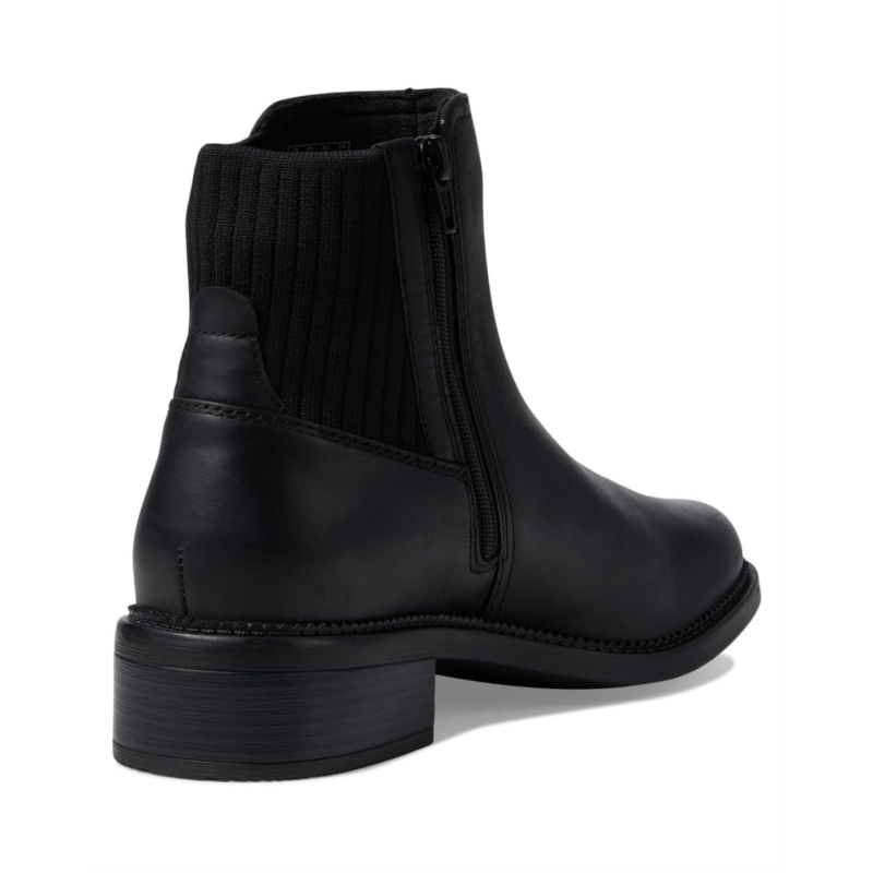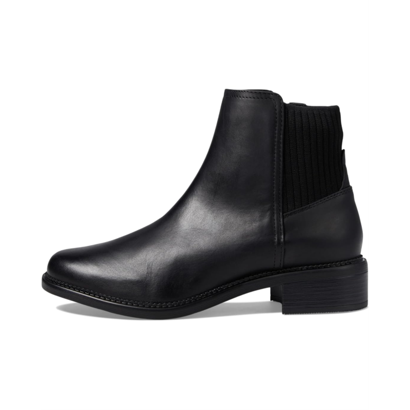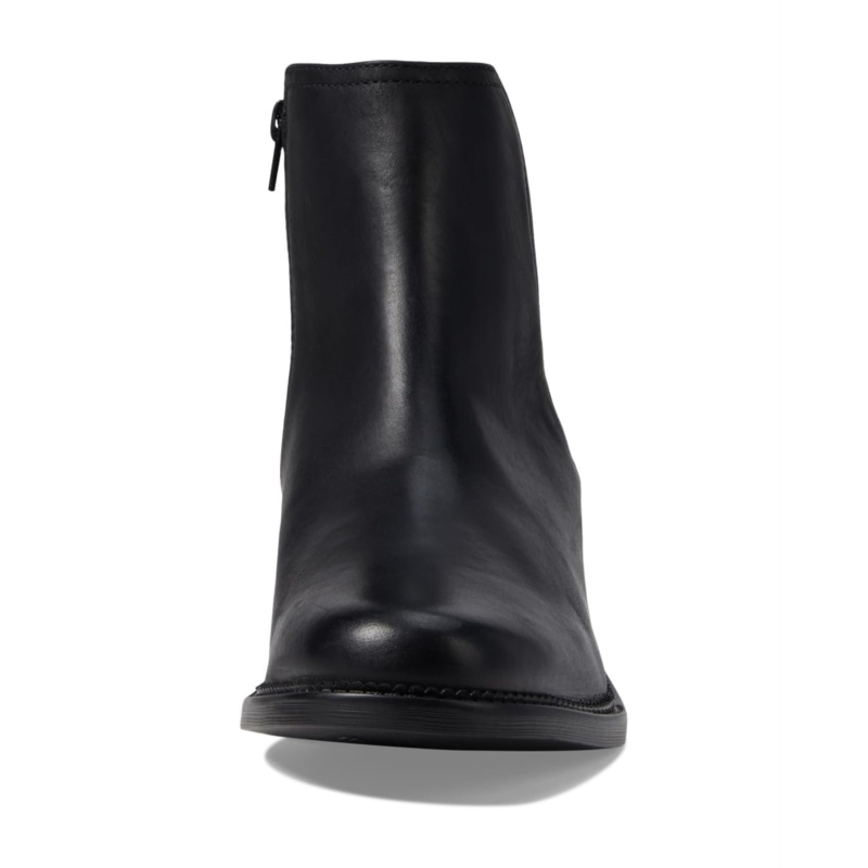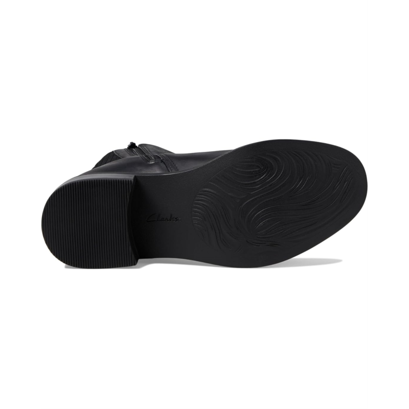 - Enjoy versatile styling options and experience unparalleled comfort wherever you go wearing the Clarks Maye Palm Boots. Designed in a minimal and sleek style, these ankle-high boots feature a polished leather upper, a breathable fabric lining, and a comfort cushioned foam footbed. They are elevated by the stacked block heel and come with stretch goring on the shaft for easy pull-on wear and a zippered side closure for a secure fit.