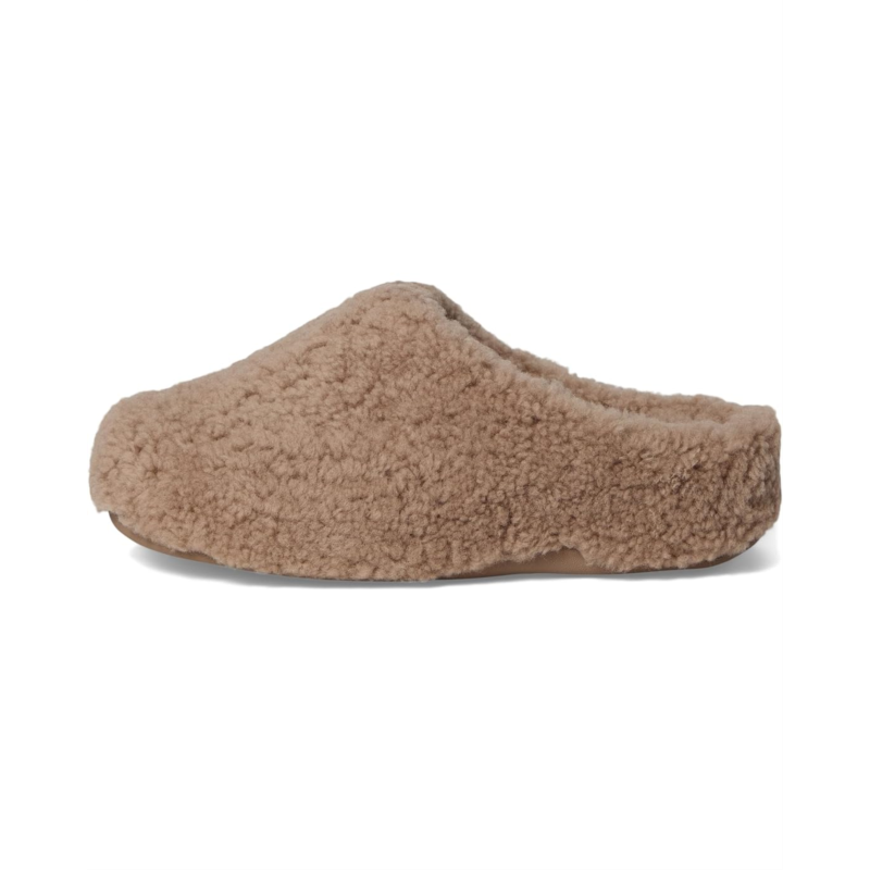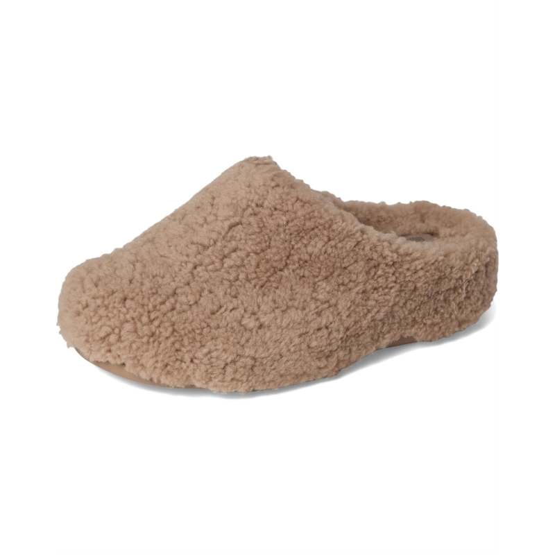 - FitFlop Shuv Curly-Shearling Clogs are as fabulous as they are fluffy. Crafted in ultra-soft curly shearling, inside and out, and finished with a plush faux-fur footbed, they deliver a bold blend of statement style and next-level coziness. Theyre engineered with our legendary Microwobbleboard midsoles, so you not only look like youre walking on clouds, you feel like it too. Lightweight, cushioned, and irresistibly snug, theyre perfect for lounging in luxury. Wear them as slippers or plush clogs around the house - with full rubber outsoles so stepping outside is no problem.