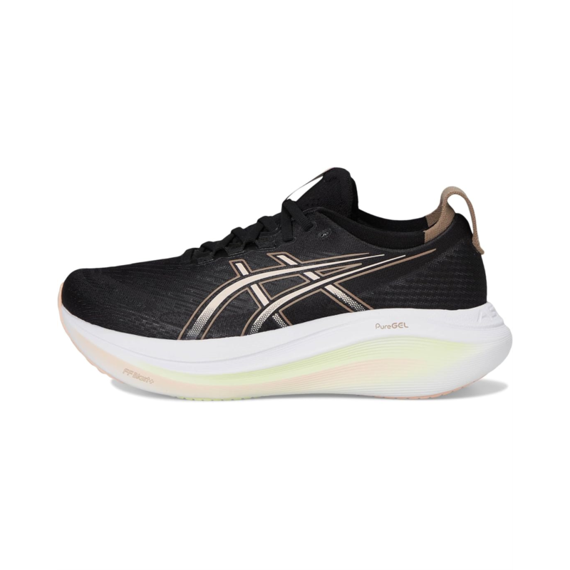 The primary materials that compose this product contain a minimum of 20 percent recycled content.- The ASICS GEL-Nimbus 27 shoes soft cushioning properties help you feel like you''re landing on clouds. This design is revamped to help create a softer and smoother running experience. A soft engineered jacquard mesh upper comfortably wraps your foot while supplying advanced ventilation. Additionally, the knite tongue and collar help provide a soft and supportive feel. By using FF BLAST Plus Eco Cushioning, this trainer creates a lighter and softer cushioning experience with enhanced focus on sustainability. Lastly, Hybrid ASICSGRIP Outsole Rubber helps create better traction, improved softness, and advanced durability.