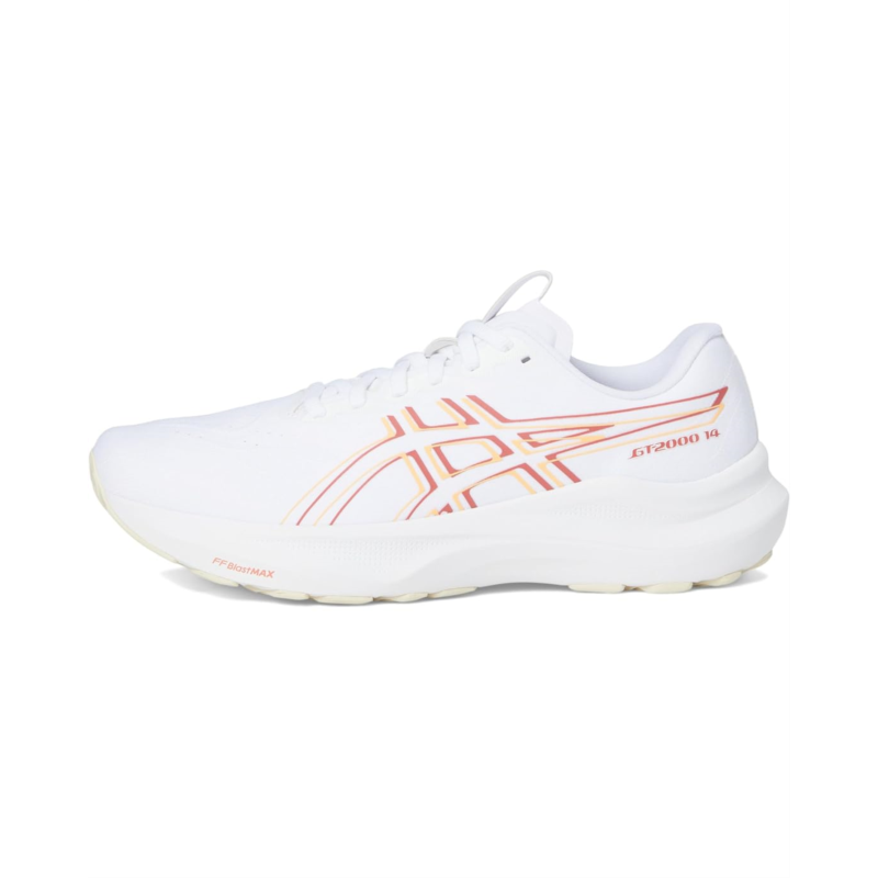 - The ASICS Gt-2000 14 shoes are designed to help provide a more energetic ride and a supportive running experience. A trampoline-inspired forefoot pod is positioned on the medial side of the outsole. This helps produce better stability and a more balanced toe-off. These low-top running shoes are made of a woven mesh upper and polyester lining that helps keep your feet dry. Their polyester insole offers added comfort. These lace-up shoes are designed with a tongue feature that provides a comfortable and secure feel around the midfoot while reducing tongue movement. The midsole of these shoes is updated with a FF BLAST MAX cushioning unit that creates a more energized toe-off and also offers cloud-like softness during the landing phase of your stride.