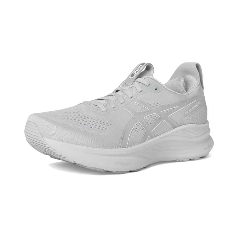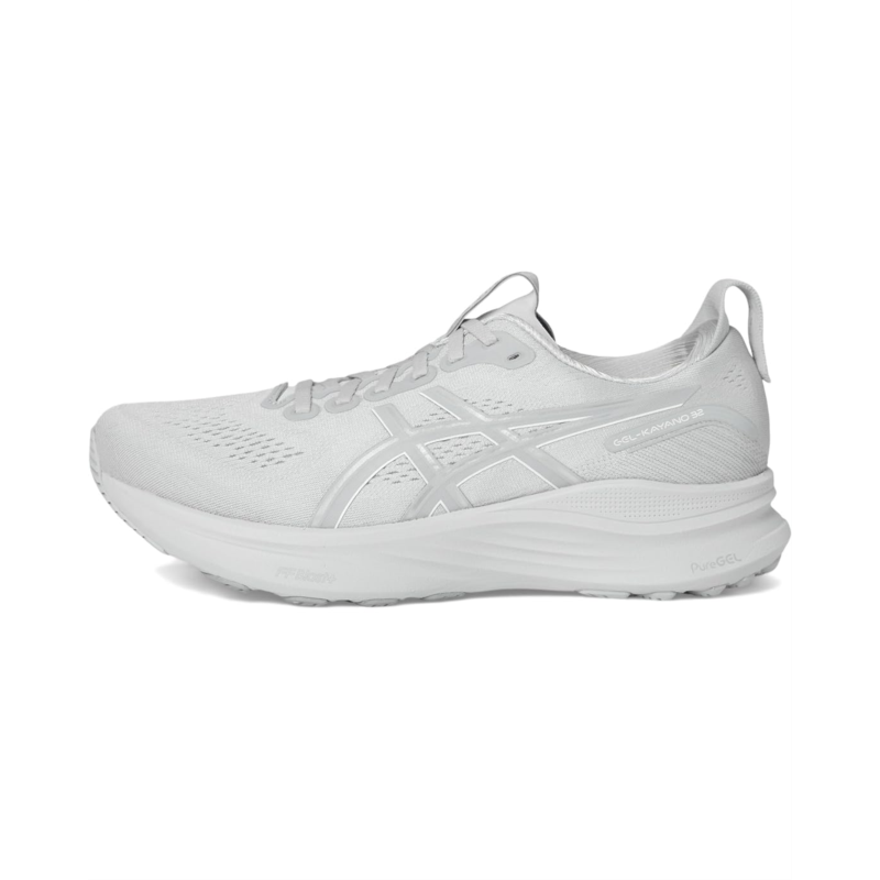 - Introducing the ASICS GEL-Kayano 32 shoes, the pinnacle of support and comfort. Their FF BLAST PLUS foam midsole is combined with a higher midsole stack height while reducing the weight to provide a more balanced experience, making your training feel smoother and more comfortable. The engineered polyester upper features a lace-up closure and a knit heel pull tab for an easy put-on and take-off. These lace-up shoes feature a 4D GUIDANCE SYSTEM that helps provide adaptive stability for a more supportive and balanced stride during your distance training. They are made of an OrthoLite X-55 polyester insole and polyester lining. The Rearfoot PureGEL technology of these shoes allows movement in multiple planes as the foot transitions through the gait cycle, while the reinforced tongue wing along the arch also provides additional comfort and support. Get ready for a comfortable day out with these running shoes.
