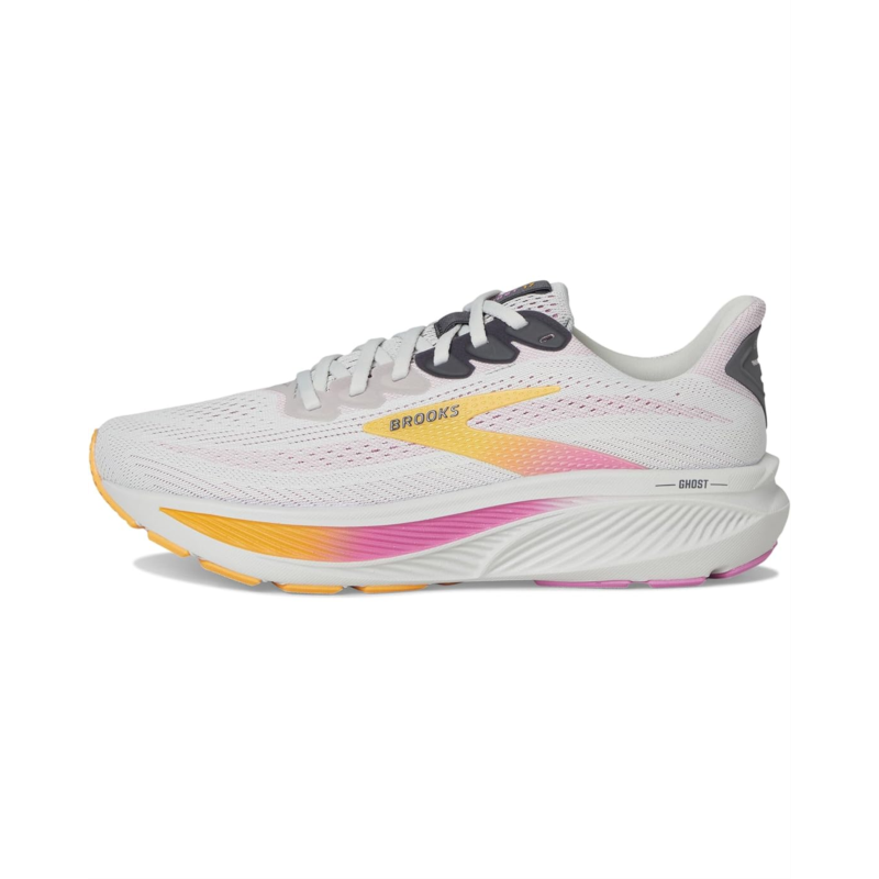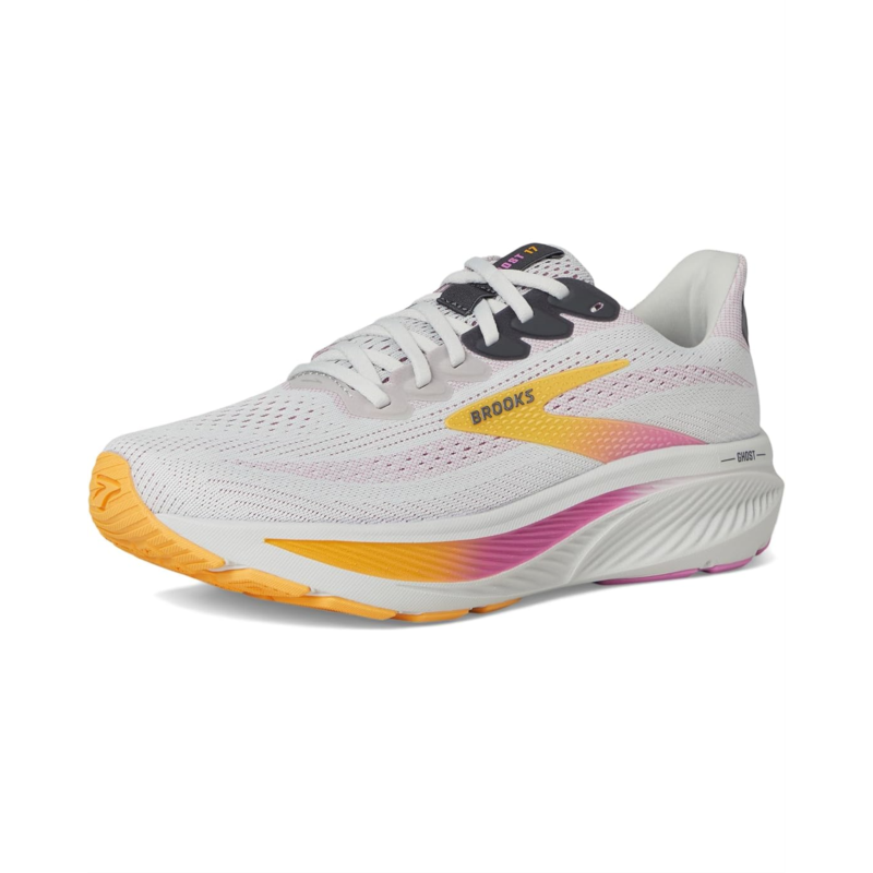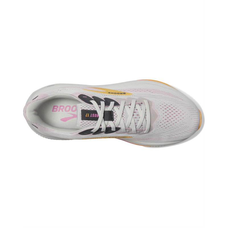 - The Brooks Ghost 17 shoes offer balanced cushioning for smooth transition, support, and reliability in the long run. Their premium nitrogen-infused DNA Loft V3 provides a balanced ride and plush underfoot comfort. Crafted for ultimate comfort and peak performance, the new double jacquard air mesh upper keeps your feet cool and comfortable. They are designed with an EVA insole and nylon lining. These lace-up shoes are a perfect choice for your outdoor rides and adventures.