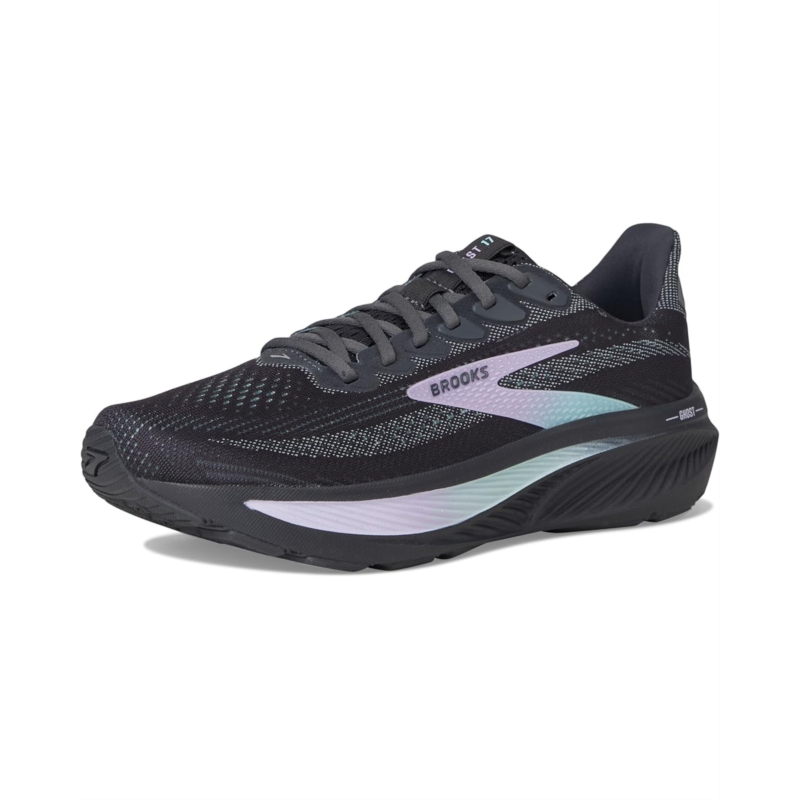 - The Brooks Ghost 17 shoes offer balanced cushioning for smooth transition, support, and reliability in the long run. Their premium nitrogen-infused DNA Loft V3 provides a balanced ride and plush underfoot comfort. Crafted for ultimate comfort and peak performance, the new double jacquard air mesh upper keeps your feet cool and comfortable. They are designed with an EVA insole and nylon lining. These lace-up shoes are a perfect choice for your outdoor rides and adventures.
