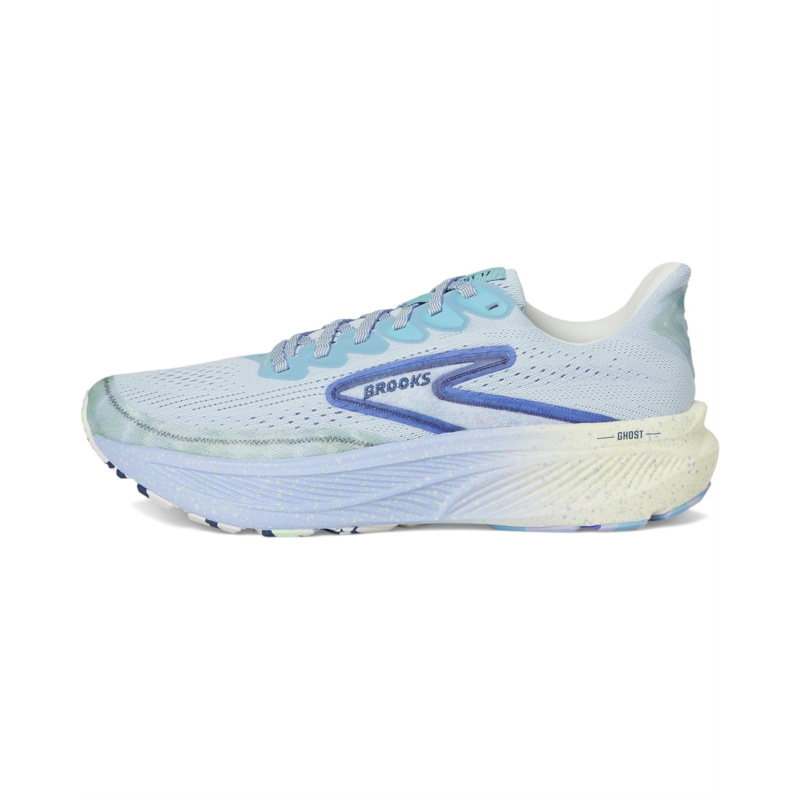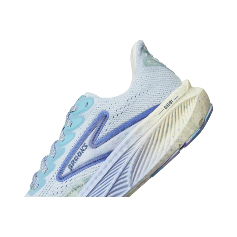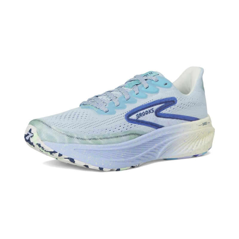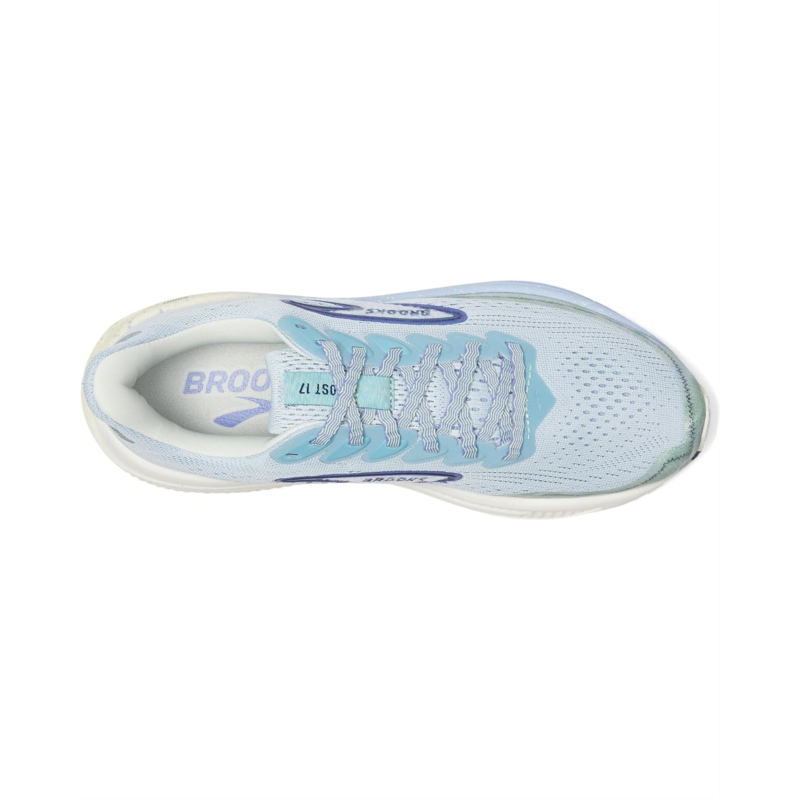 - The Brooks Ghost 17 shoes offer balanced cushioning for smooth transition, support, and reliability in the long run. Their premium nitrogen-infused DNA Loft V3 provides a balanced ride and plush underfoot comfort. Crafted for ultimate comfort and peak performance, the new double jacquard air mesh upper keeps your feet cool and comfortable. They are designed with an EVA insole and nylon lining. These lace-up shoes are a perfect choice for your outdoor rides and adventures.