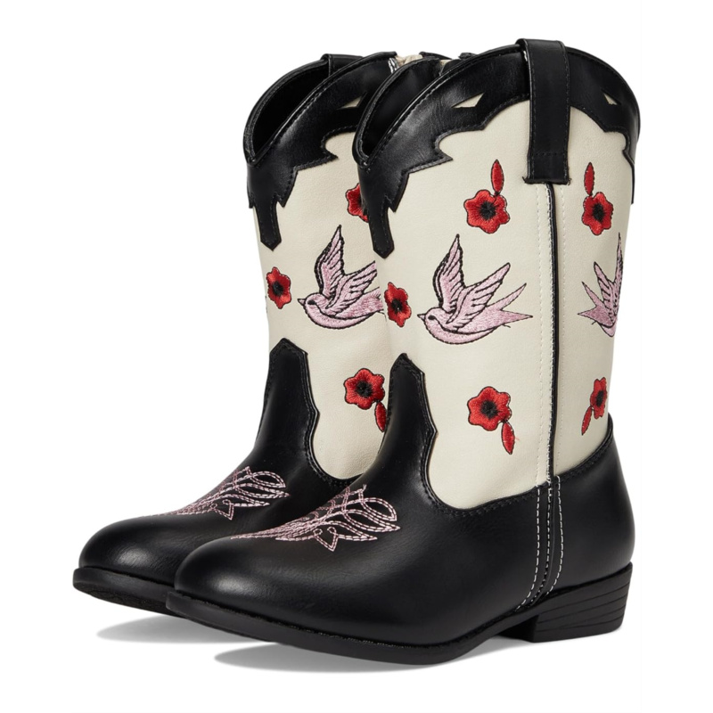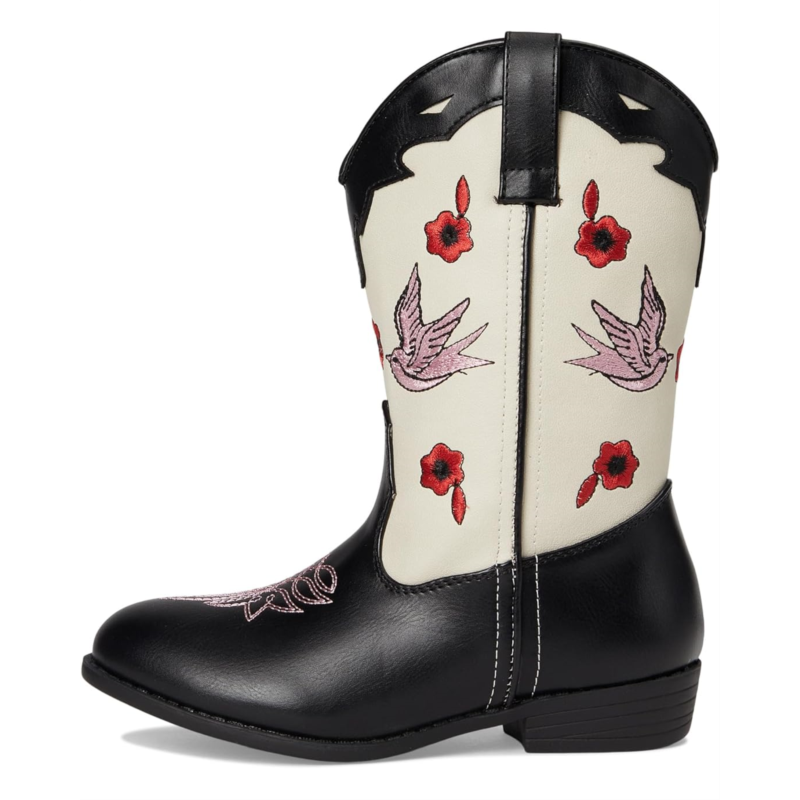 - Expertly designed for your little ones, the Steve Madden Kids NECTAR boots are the ultimate blend of fun, fashion, and functionality. Crafted with a faux leather upper for that sleek, polished look, these boots boast a synthetic rubber lining and rubber insole and outsole, ensuring all-day comfort and durability for every adventure. The calf-high silhouette paired with a pointed toe and chic block heel gives your young cowgirl a confident stride, whether at playdates, family outings, or festive occasions. Easy pull-on design makes dressing effortless, letting kids slide in and go in a flash.