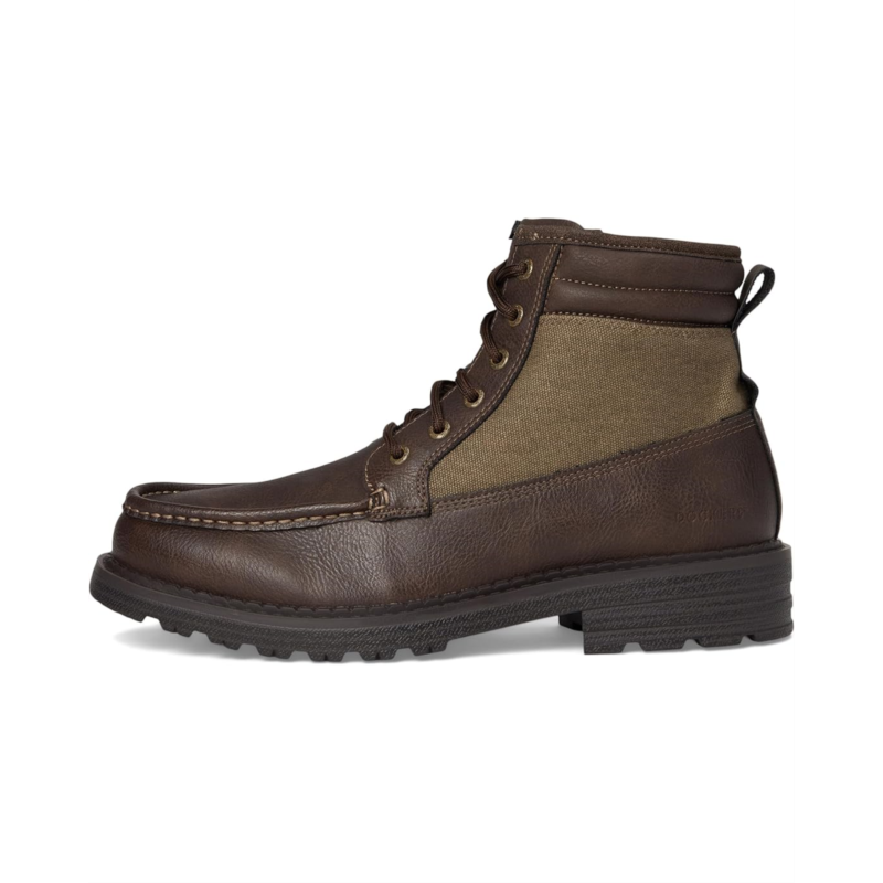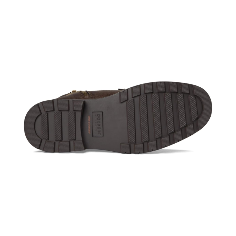 - The Dockers Tobias Boot is your go-to choice for men who refuse to compromise on comfort or versatility. Crafted with durable faux leather uppers and a resilient block heel, these ankle-high lace-ups deliver a sleek, polished look while standing up to daily wear. Inside, a polyester lining and Supreme Comfort EVA footbed with moisture-wicking sock cover keep your feet dry, cushioned, and supported all day. The rugged, lugged TPR outsole ensures unmatched traction and stability on city streets or weekend trails, while inside zippers and padded collars make slipping in effortless. Enhanced with Dockers Stain Defender treatment, these boots resist water and stains, making maintenance a breeze.