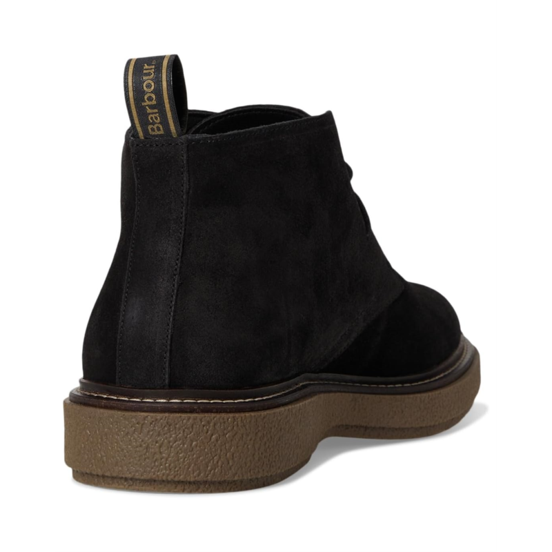 - Step out in style choosing the Barbour Blaine Chukka Boots. Made with luxe suede leather upper featuring a one-of-a-kind two-tone effect, these boots are sure to turn heads wherever you go. The cozy cotton, polyester, nylon lining and plush comfort footbed ensure all-day comfort, while the ankle-high design provides ample ankle support. Complete with a stylish crepe effect sole for added traction and durability.