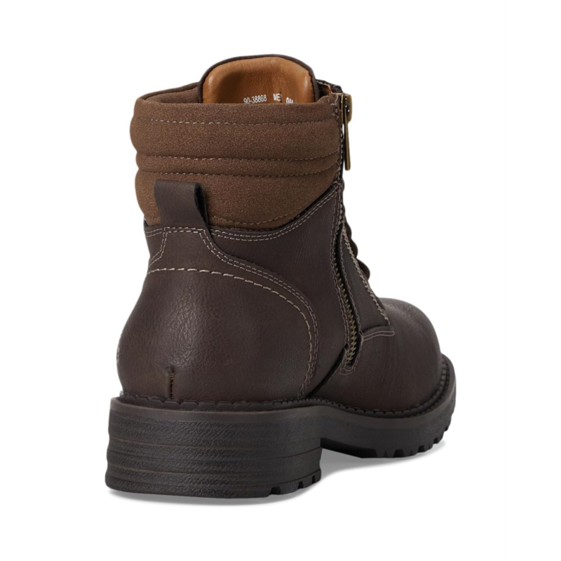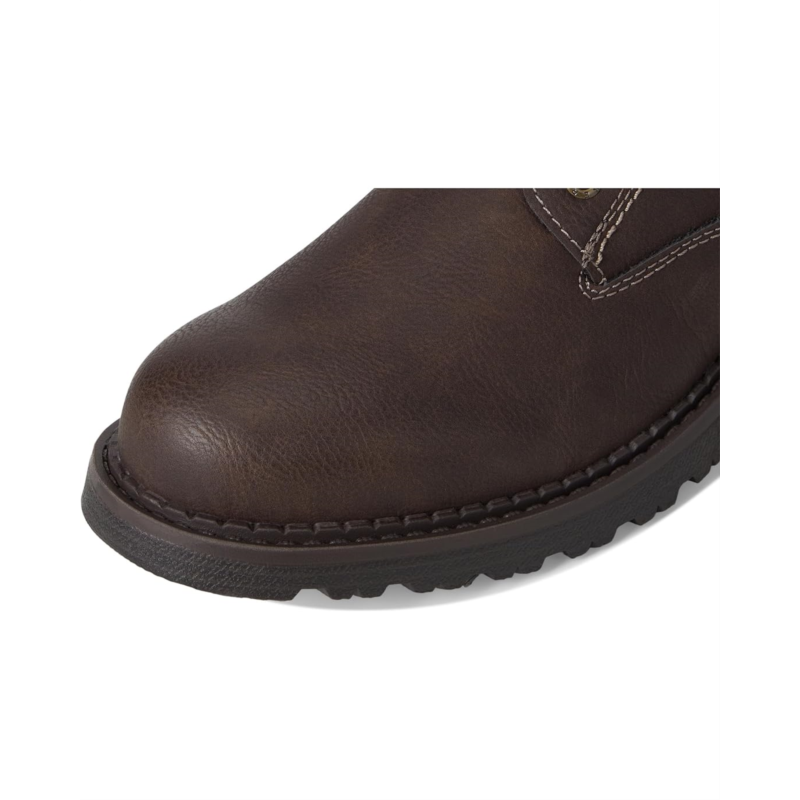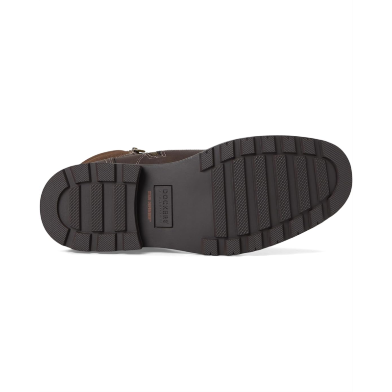 - Step into bold style and urban-ready vibes donning the Dockers Telford Boot! Engineered for the modern man, these ankle-high boots combine rugged durability with refined sophistication. The faux leather upper and outsole create a polished, resilient look, while the EVA insole cushions every step for all-day comfort. Polyester lining ensures breathable wear, and the lace-up closure with padded collar and tongue provides a secure, cozy fit. Designed to tackle city streets or weekend adventures, the block heel adds subtle height without sacrificing stability. Slip in and out effortlessly with the convenient inside zipper, and stay worry-free with the Stain Defender treatment keeping your boots fresh and dry.
