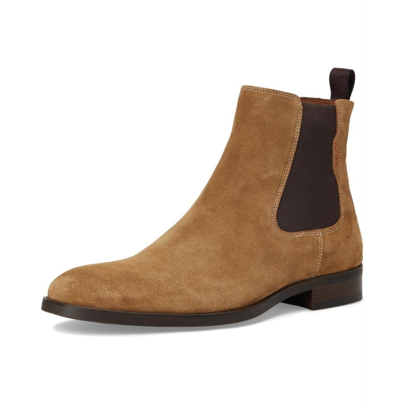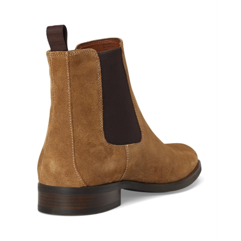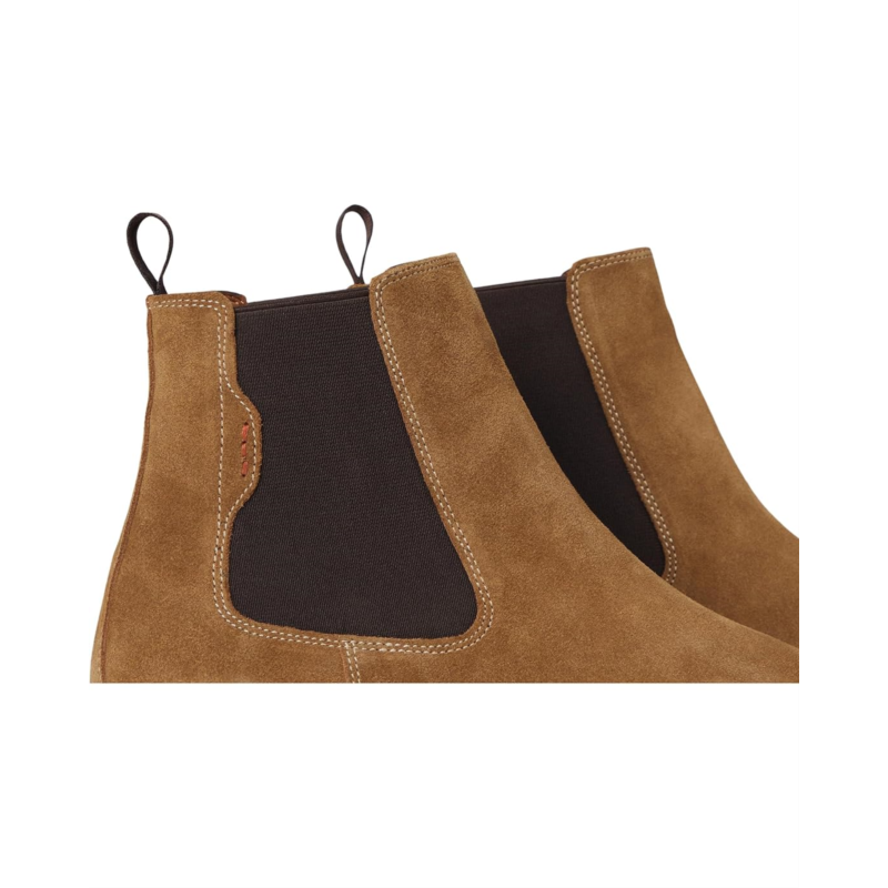 - The BROMPTON Chelsea boot is a refined, versatile footwear choice that seamlessly blends classic design with contemporary sophistication. Crafted from a suede upper, these boots offer a pull-on style with elastic gore panels, an almond toe silhouette, textile lining, ethylene vinyl acetate insole, and a pull tab in back for easy entry.