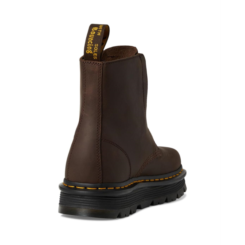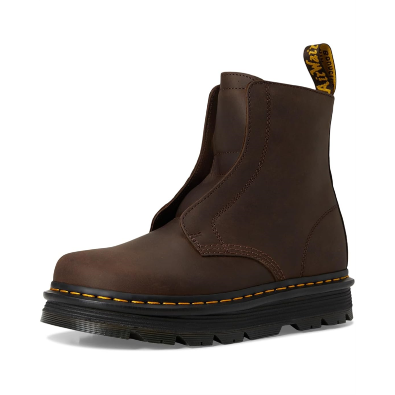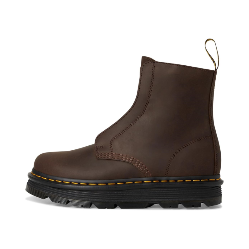 - The Dr. Martens Zebzag Laceless boot is all about mixing iconic toughness with all-day ease. Crafted with rugged Wyoming leather, it channels the DNA of the classic 1460 while ditching the laces for a no-fuss pull-on design. The high-top silhouette and round toe bring attitude, while the platform heel gives you just the right lift. Inside, a polyester lining, SoftWair footbed, and lightweight EVA outsole deliver plush cushioning and shock absorption, because tough days deserve a softer landing. The ergonomic Zebzag sole fuses EVA with durable PVC, making every step light yet unstoppable. And of course, it wouldn''t be a Doc without the iconic yellow welt stitching, bold tread, and exaggerated grooving.