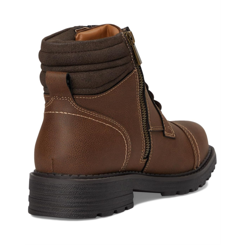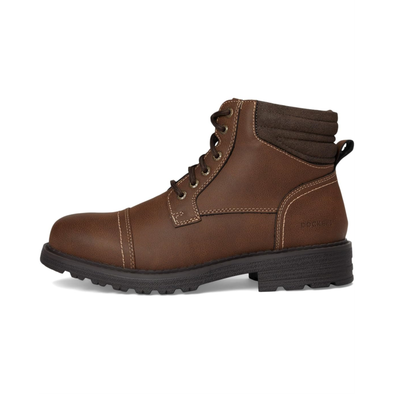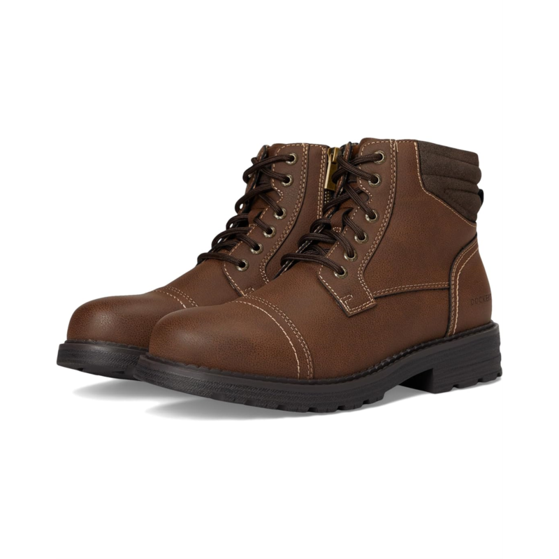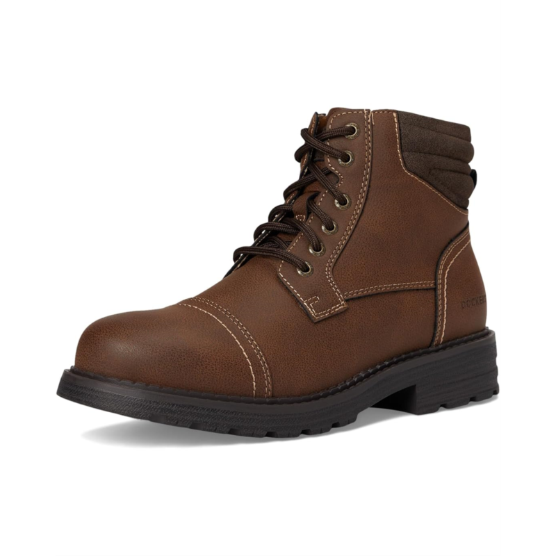 - Tackle your day with confidence in the Dockers Thomas Boot, designed to combine practicality with style. Made with durable synthetic leather uppers, these boots are ready to withstand whatever elements come your way. Treated with Stain Defender for water and stain resistance, theyre as easy to care for as they are reliable. The Supreme Comfort EVA footbed features a massaging, cushioned footbed texture, providing all-day comfort and support. The moisture-wicking linings in these mens shoes keep your feet dry, even during the most active moments. Finished with a rugged TPR outsole, these Dockers boots ensure stability and traction on any terrain. With convenient side zippers for easy on-and-off wear and padded collars and tongues for extra cursing, these mens boots are ready for everything from urban exploration to weekend adventures, offering both rugged casual style and high-quality performance in one versatile package.
