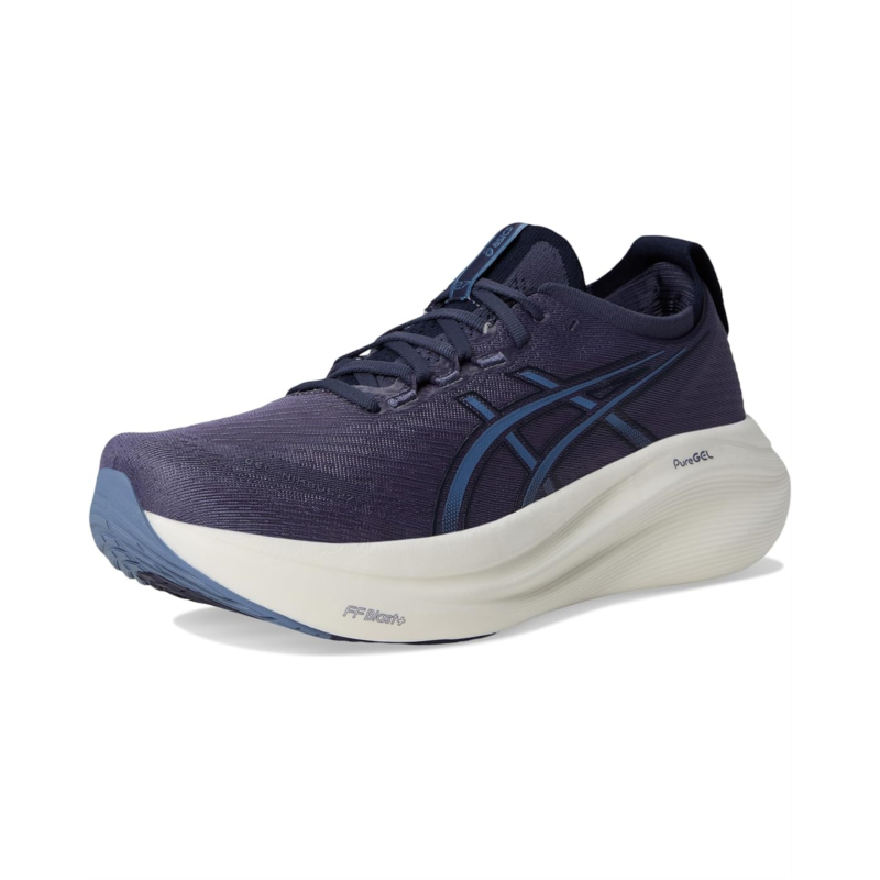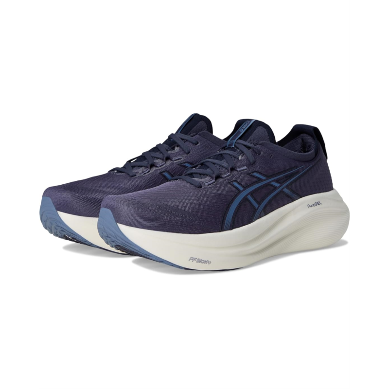 - The ASICS GEL-Nimbus 27 shoes soft cushioning properties help you feel like youre landing on clouds. This design is revamped to help create a softer and smoother running experience. A soft engineered jacquard mesh upper comfortably wraps your foot while supplying advanced ventilation. Additionally, the knitted tongue and collar help provide a soft and supportive feel. By using FF Blast Plus Eco Cushioning, this trainer creates a lighter and softer cushioning experience with enhanced focus on sustainability. Lastly, Hybrid ASICSGRIP outsole rubber helps create better traction, improved softness, and advanced durability.