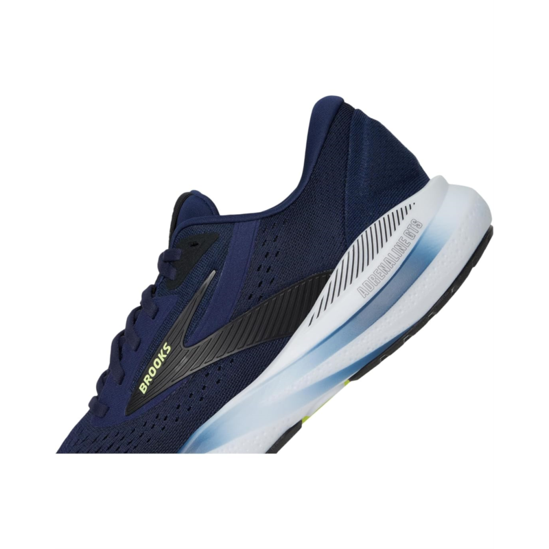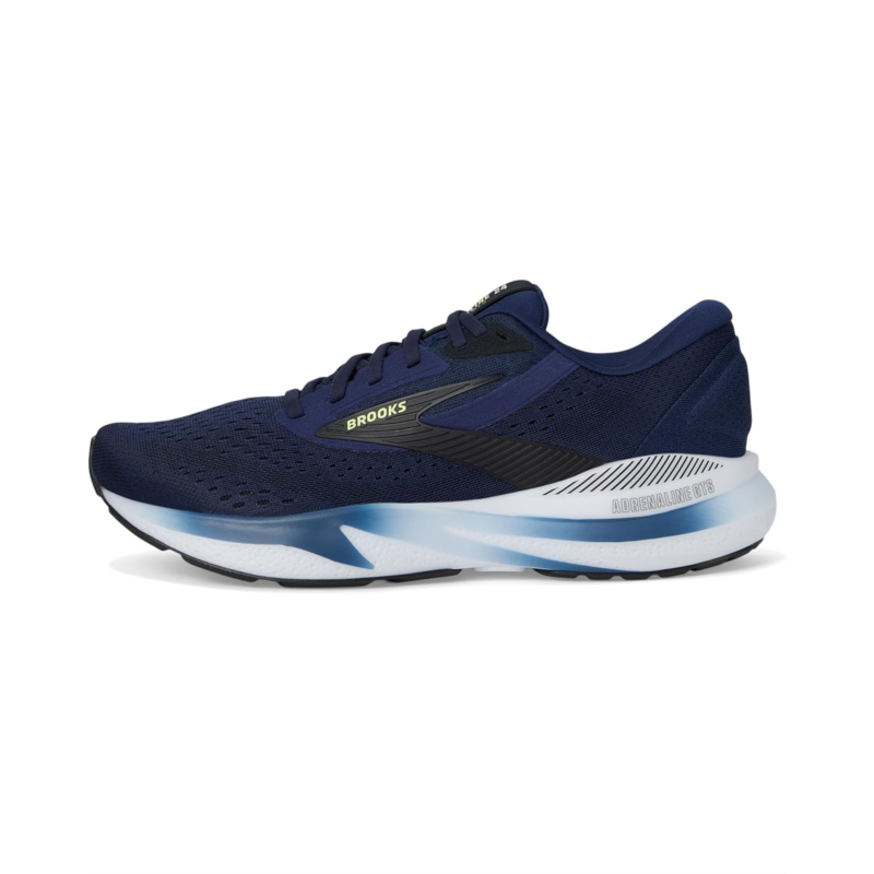 - Cloud-like comfort and stability in the Brooks Adrenaline GTS 24, designed to elevate your run with every stride. Featuring a durable polyester upper and breathable nylon lining, this shoe offers unbeatable comfort and performance. The nitrogen-infused DNA Loft v3 cushioning delivers plush, responsive support, while the Holistic Guiderail Support System keeps your feet in perfect alignment, reducing strain on your knees and hips. An EVA insole adds lightweight comfort, and the Road Tack rubber outsole provides excellent grip and traction on any surface. With a secure lace-up closure, this running shoe ensures stability, speed, and a smooth ride.
