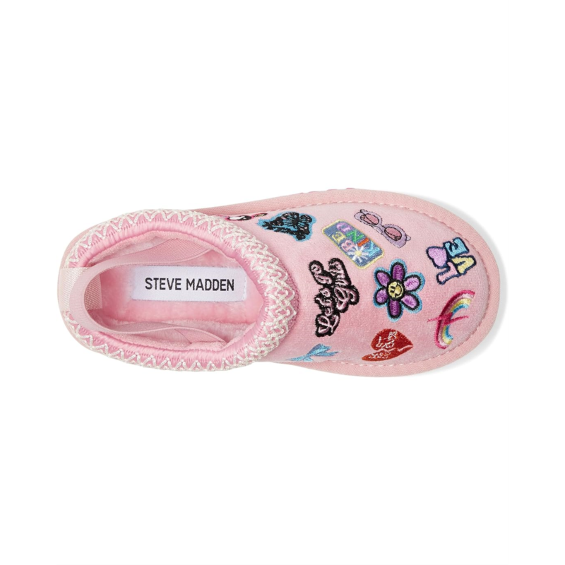 - Cozy meets cool in the Steve Madden Kids Mads shoes, playful slip-on boots covered in colorful embroidered patches. They are designed with a rubber insole and synthetic rubber lining. The elasticized slingback strap offers a perfect fit. With their soft suede upper and a cushioned rubber outsole, these ankle-high boots are perfect for lounging or making a statement on the go.