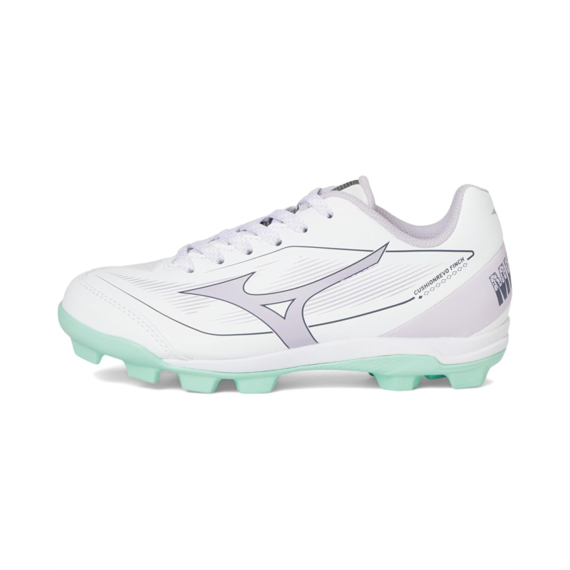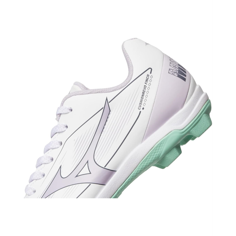- The Mizuno Cushionrevo Finch Jr shoes are designed for the young athlete who demands comfort and performance. Featuring an all-weather plastic upper for durability in any condition, these athletic shoes are built with a reinforced toe for added structural support. Lightweight and constructed on a female last for a more precise fit, their low-top design enhances ankle mobility, allowing for quick, agile movements on the field. These low-top shoes are made of a polyester insole and lining. The lace-up closure ensures a secure fit. These lace-up shoes are perfect for young players looking to elevate their game with style and support.