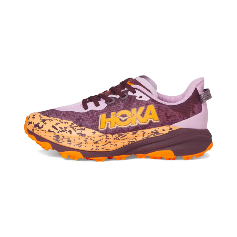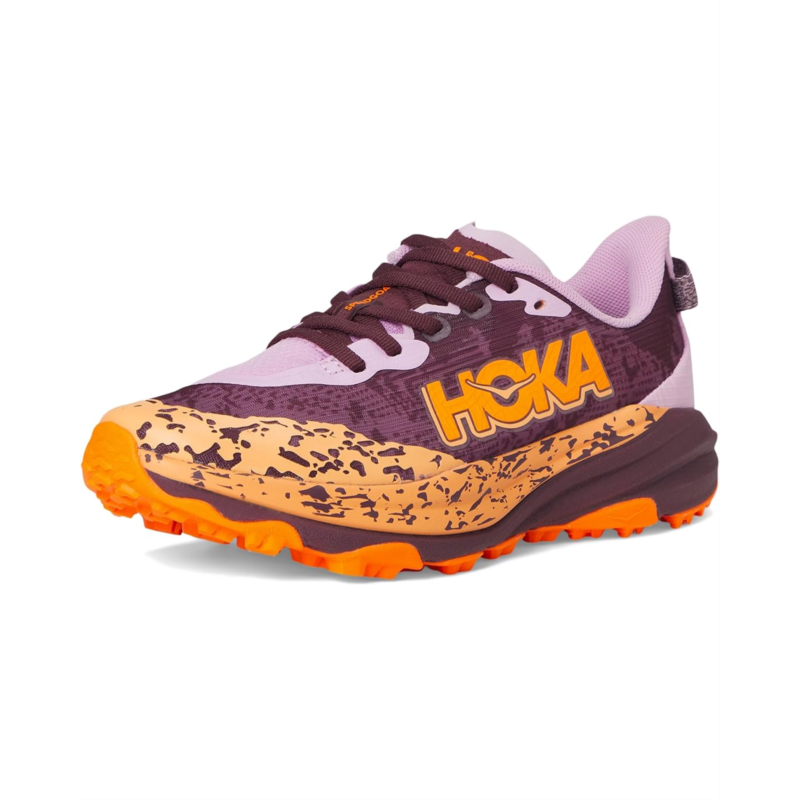 - Built off the blueprints of the Hoka Original Trail Icon, the Hoka Kids Speedgoat 6 shoes are lighter than ever with a 50% sugarcane EVA midsole and feature deeper durable 4.5mm lugs for trail traction. The polyester upper of these sneakers is designed with a lace-up closure for a secure fit. Offering all-day comfort, the EVA insole and textile lining provide added comfort. Colorful and comfortable, these lace-up sneakers are a must-have for your kid''s footwear collection.