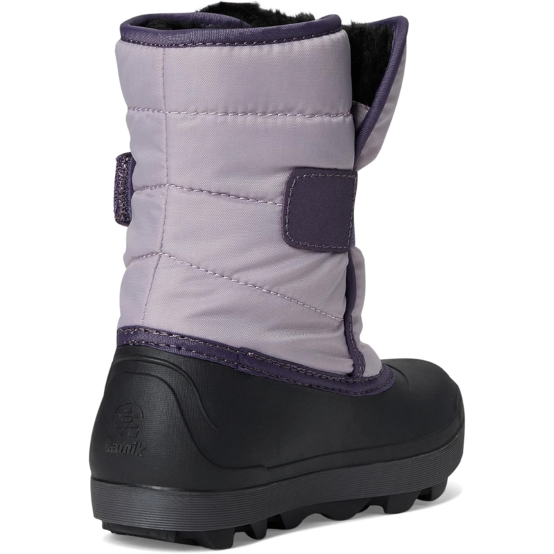 - Ready for endless cold-weather smiles? Our Kamik Kids Snowbug 7 boots are designed to keep those little feet cozy and dry, so theres no reason for frowns! Made with eco-friendly materials, these boots not only keep your child warm but also help protect our planet. The waterproof nylon upper ensures durability against splashes and snowflakes, while the easy-on wide opening and adjustable elasticized hook-and-loop strap mean theyll be ready for fun in no time. With plush insulation for warmth down to -10ºF and a soft, moisture-wicking faux fur lining, every step will feel like a cozy hug. Plus, the lightweight rubber shell and grippy sole provide eco-friendly protection and stability, making winter playtime a blast!