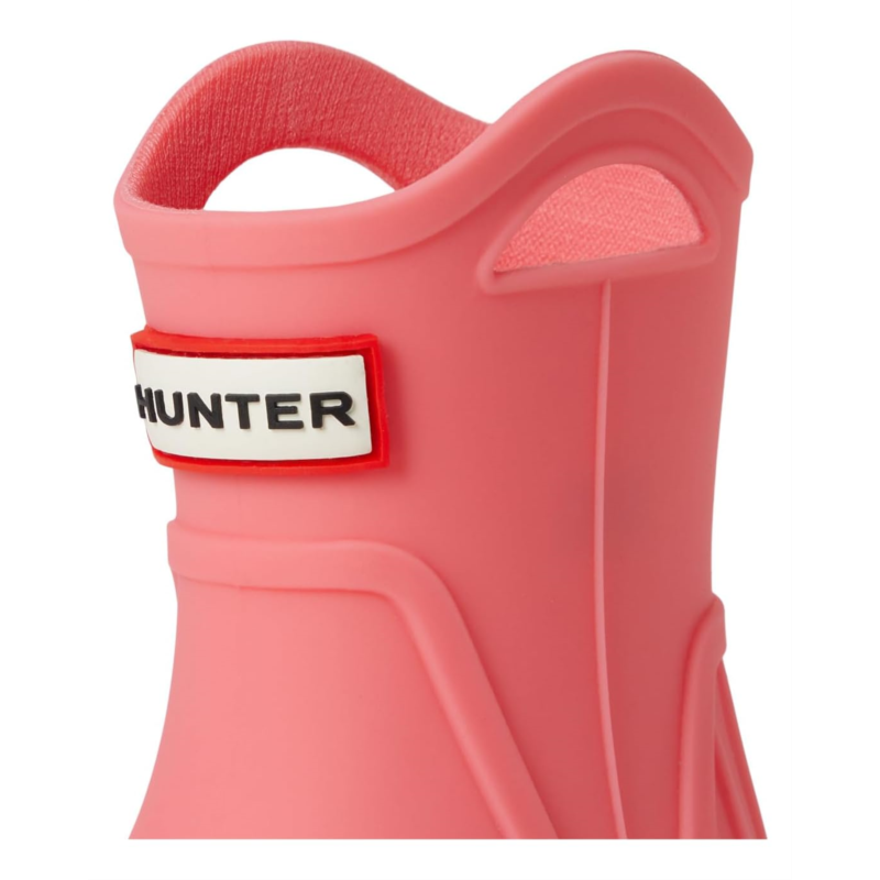 - Rainy day style gets even cooler in the Hunter Kids Georgey boots. Featuring a lightweight design with handles for easy pull-on and off access, these pull-on boots are made with a comfort footbed and are 100% waterproof to keep your kids feet dry. They are made of a rubber upper, EVA insole, and 100% recycled polyester lining. Waterproof and durable, these calf-high boots are good for heavy showers.