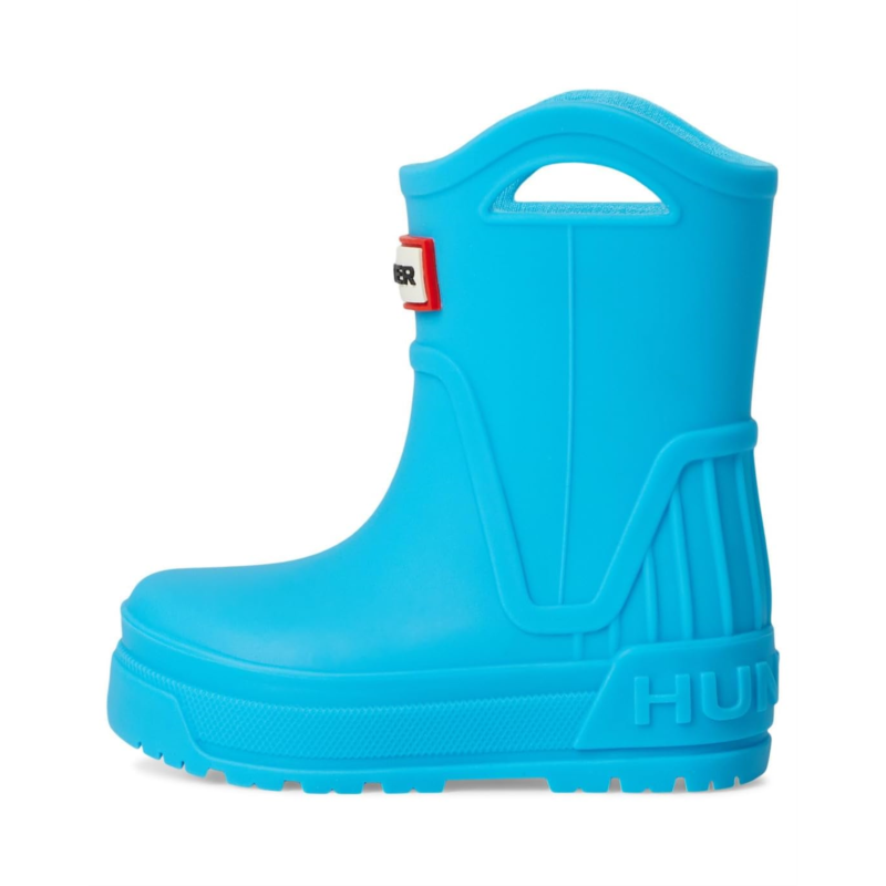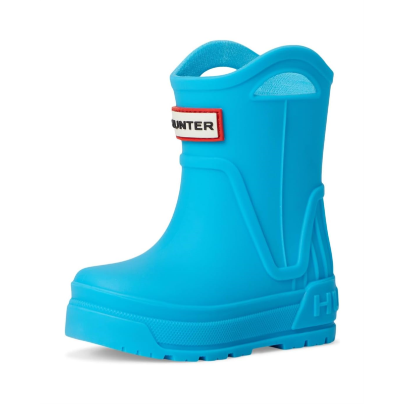 - Rainy day style gets even cooler in the Hunter Kids Georgey boots. Featuring a lightweight design with handles for easy pull-on and off access, these pull-on boots are made with a comfort footbed and are 100% waterproof to keep your kids feet dry. They are made of a rubber upper, EVA insole, and 100% recycled polyester lining. Waterproof and durable, these calf-high boots are good for heavy showers.
