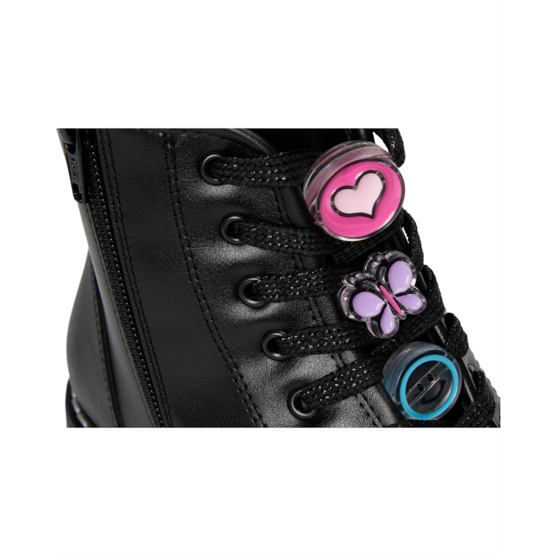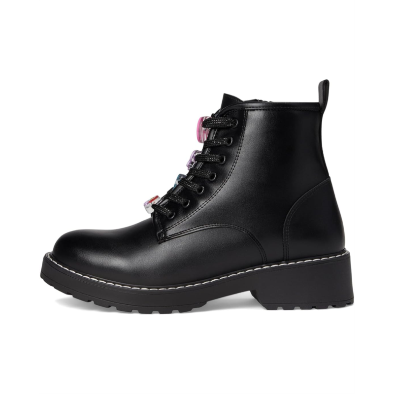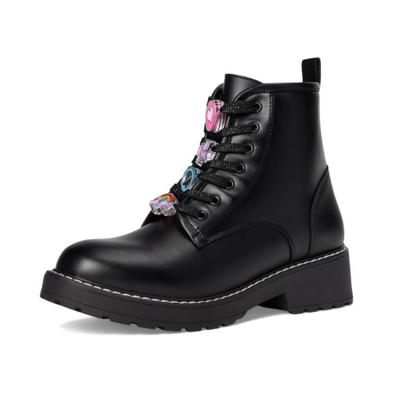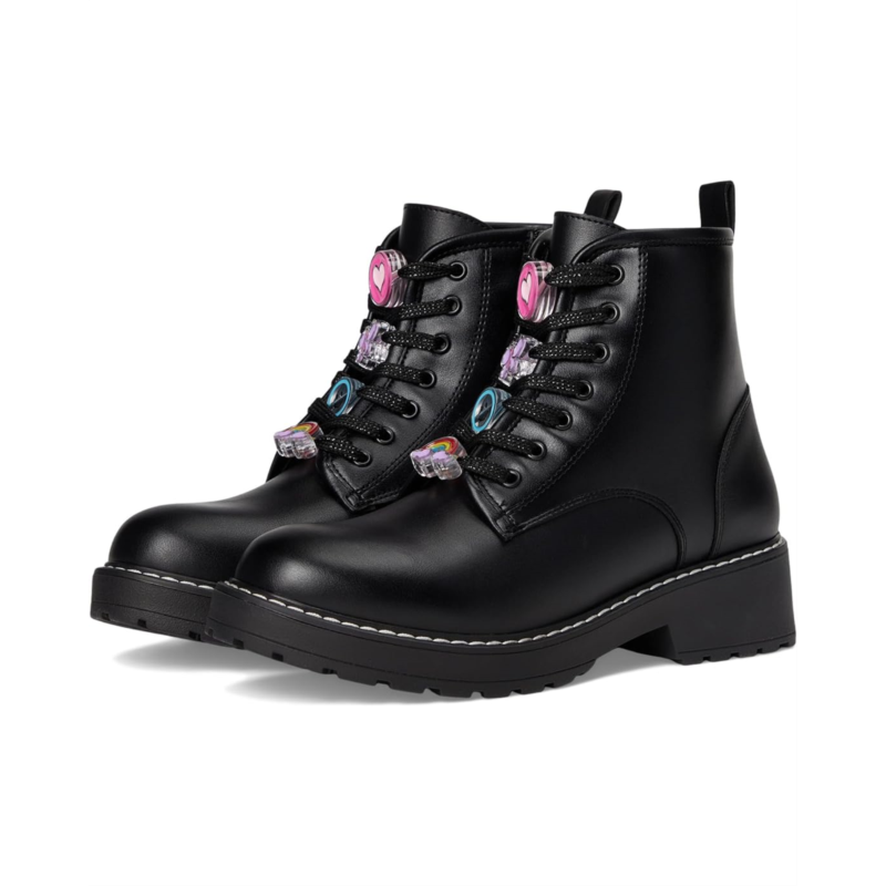 - The Steve Madden Kids Wriley boot brings a playful edge with a glossy patent finish and chunky sole. Colorful charms along the laces add a fun, personalized touch to this standout combat style.