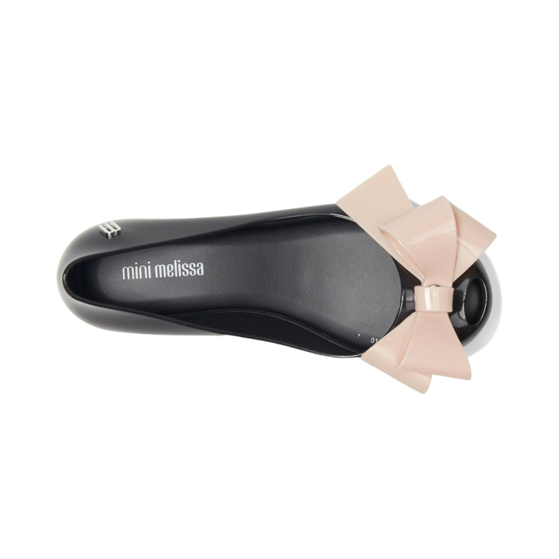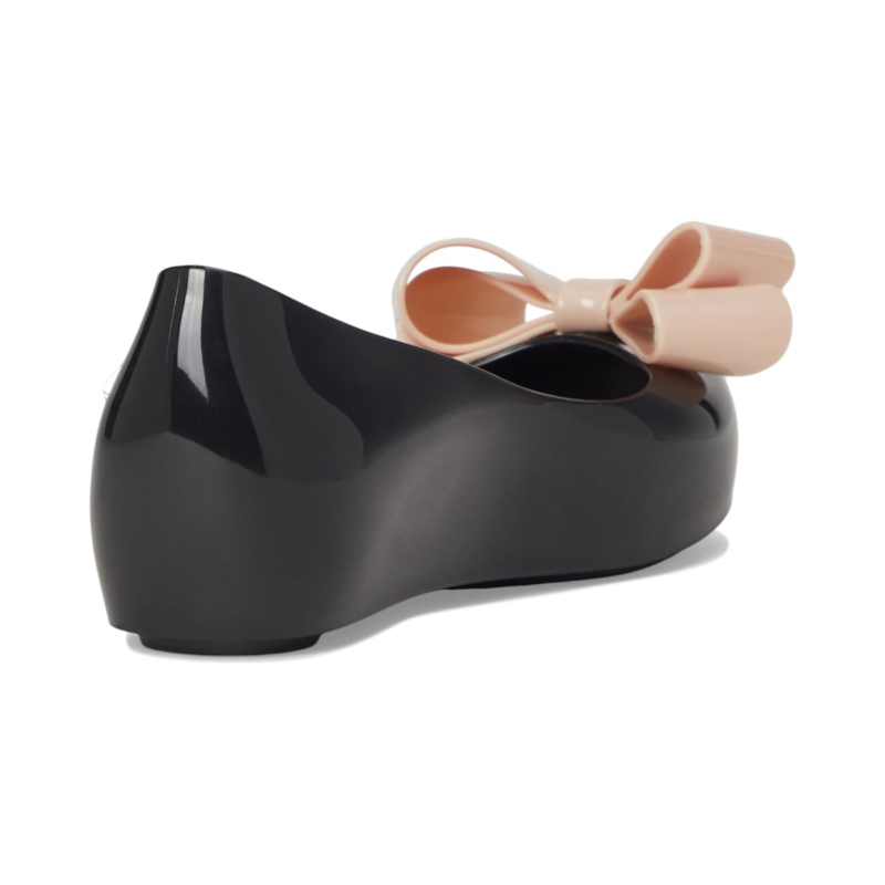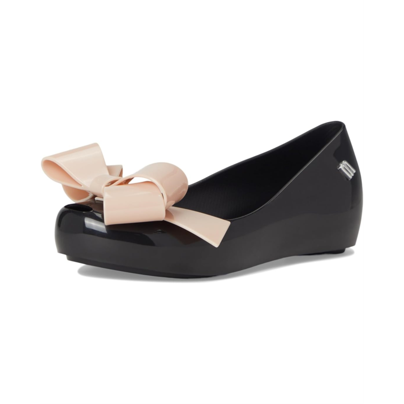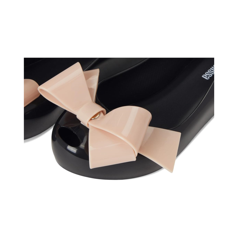- 100% recyclable, vegan-certified, and water-resistant, the Mini Melissa Ultragirl Classy shoes are ballet flats featuring a double bow on the PVC upper and bubblegum scent. They are made of a rubber insole that makes them comfortable to wear for long hours. Stylish and easy to slip on and off, these ballet shoes work for different occasions.