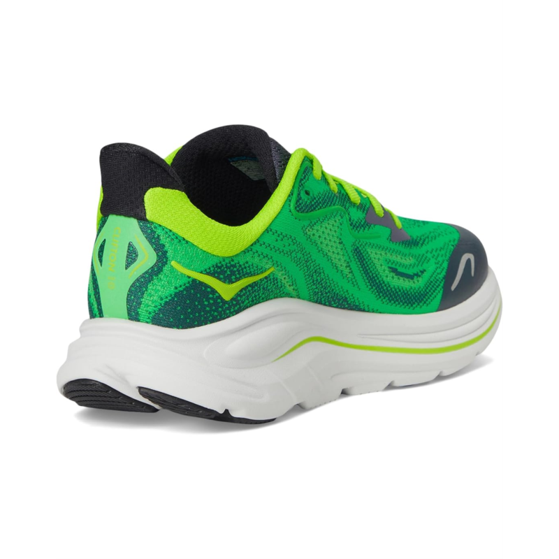 - LIGHT AND PLUSH FOR EVERYDAY TRAINING. Designed for future flyers, the Clifton 10 delivers the same cushy comfort and cutting-edge performance as the adult style in a slightly smaller package. Updated with a breathable jacquard upper for enhanced airflow, cued up with a hyper cushy midsole, rugged rubber outsole, and hardwearing toe cap to keep up with up-and-coming athletes. Offered in a spectrum of endorphin-chasing hues, the Clifton 10 has been finished with reflective hits to help kids shine bright.