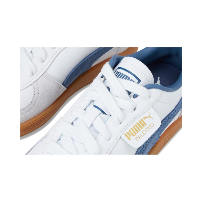 - Meet the PUMA Palermo, a bold blast from the archives thats making major waves in todays sneaker scene. Crafted with a luxe suede upper and cozy polyester lining, these kicks blend vintage football flair with modern-day street edge. The classic T-toe construction, vibrant colorblocking, and debossed plus foil-printed PUMA branding on the quarter panel and heel cap shout heritage cool. A sturdy rubber insole and outsole ensure grip and comfort whether youre at the game, out on the town, or just owning the sidewalk. Finished with a secure lace-up closure, the Palermo brings timeless terrace culture to a new generation.