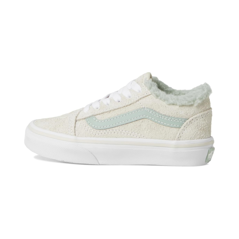 - Offering a classic look, the Vans Kids Old Skool shoes are perfect to pair with your kids different outfits and styles. The suede and canvas upper of these sneakers is styled with a lace-up closure that offers a perfect fit. These casual shoes are designed with a rubber insole and cotton lining. The butterfly print on one side offers an eye-catching twist. Let your kid walk with comfort and style wearing these lace-up sneakers.