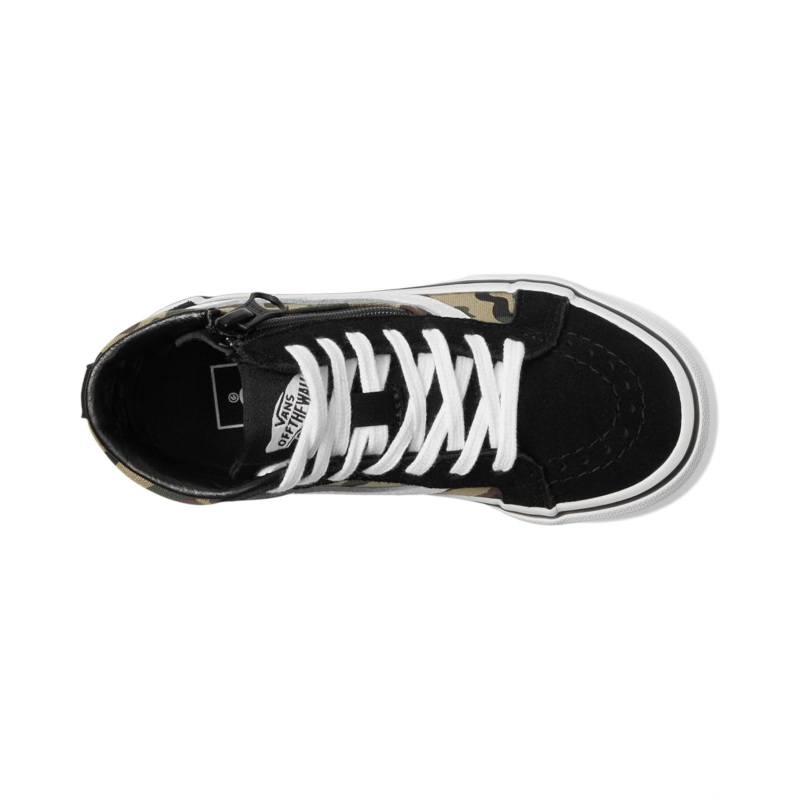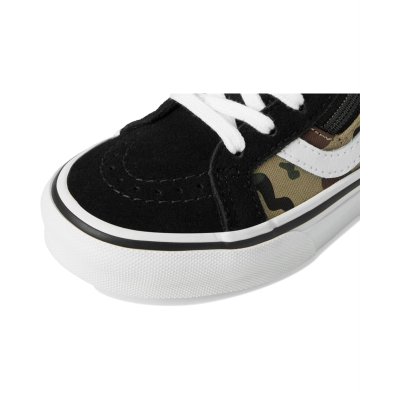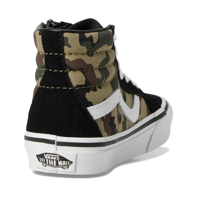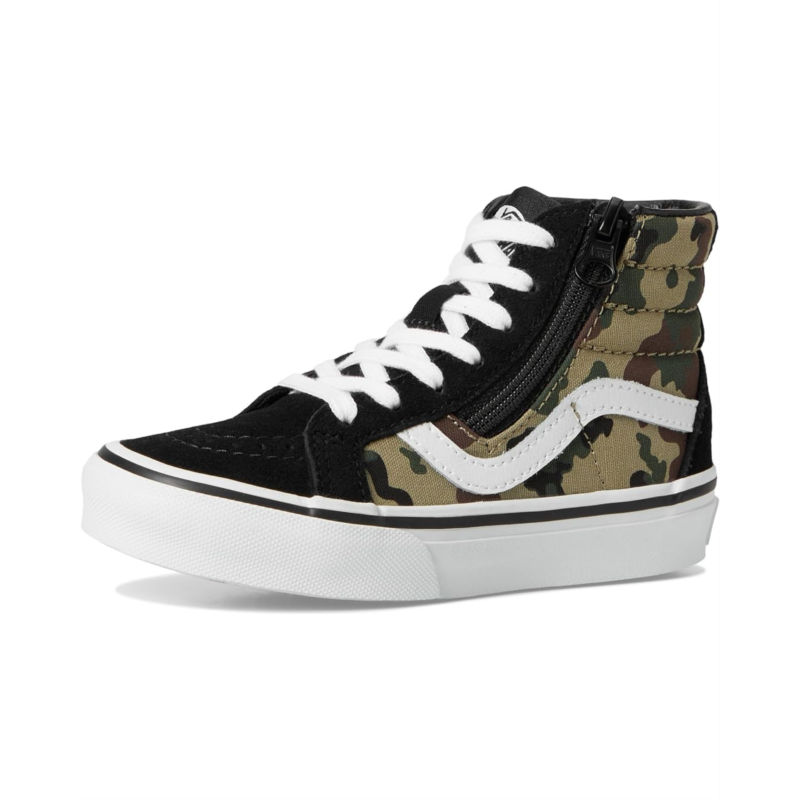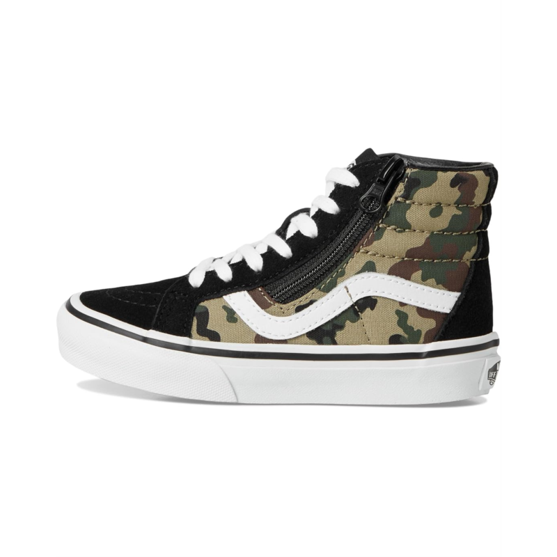 - The Vans Kids Sk8-Hi Reissue Side Zip blends iconic skate style with kid-friendly functionality, offering a high-top silhouette and easy-access design. This legendary Sk8-Hi shoe is reimagined for kids with a zippered side closure at the heel, allowing for convenience without compromising the classic lace-up look. It features durable suede and canvas uppers and signature rubber waffle outsole for reliable grip. The high-top profile provides ankle support, while the Sidestripe detailing keeps the heritage aesthetic intact.