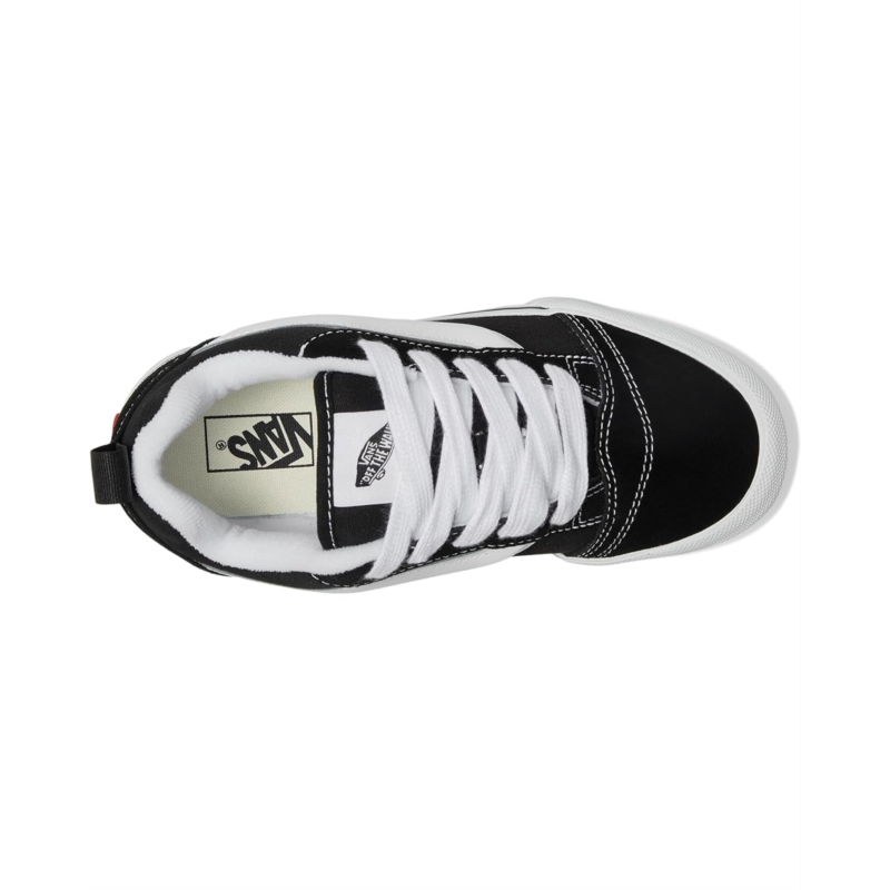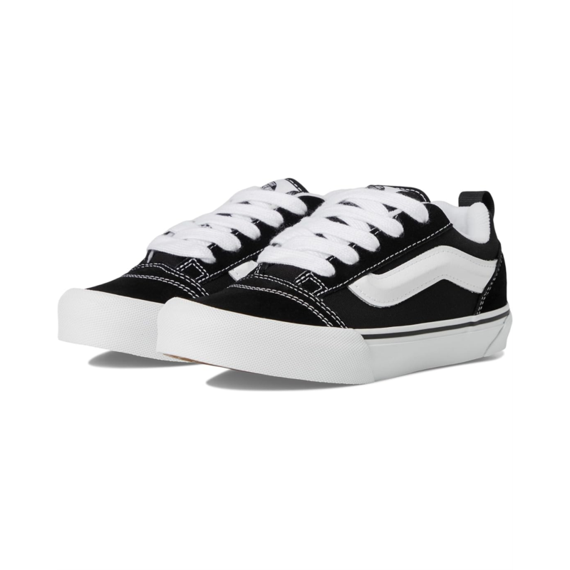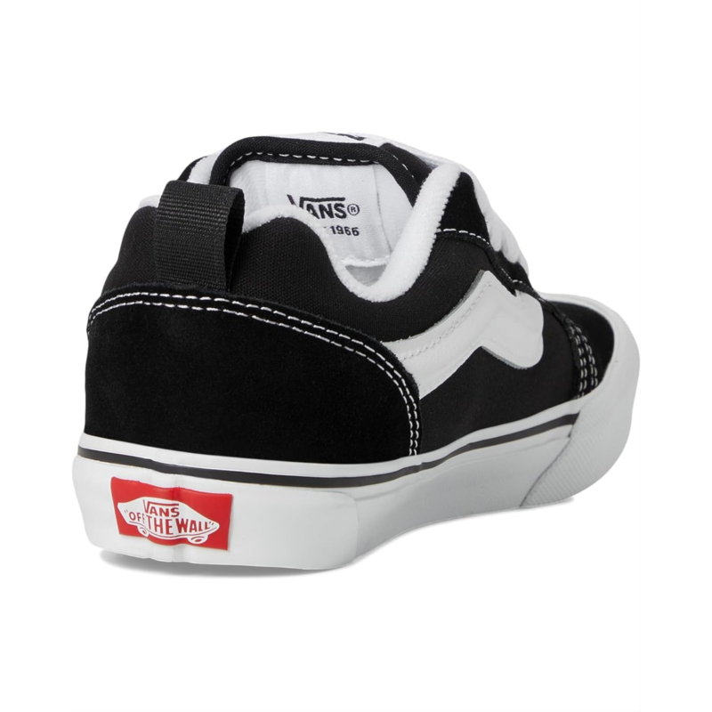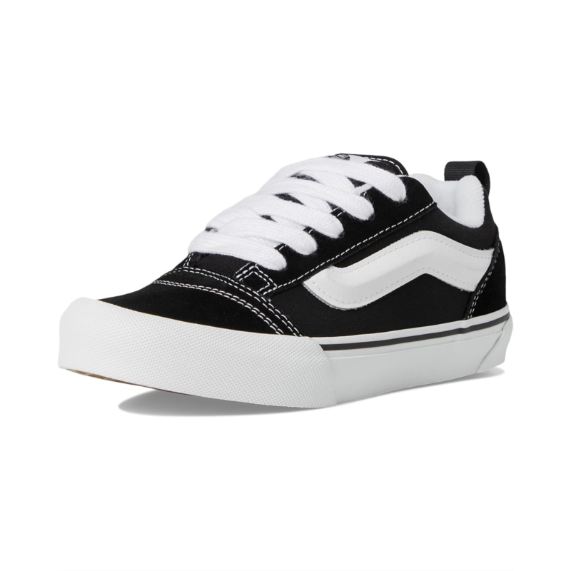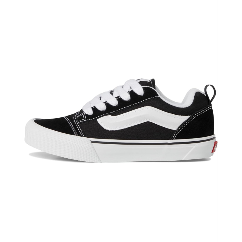 - The Vans Kids Knu Skool sneakers blend a puffy 3D Sidestripe throwback style with a modern edge. These low-top shoes for kids are made of a sturdy suede and canvas upper featuring a lace-up closure for a reliable fit. Their rubber insole and cotton lining provide added comfort. Designed with an oversized tongue and padded collar for extra comfort, these lace-up sneakers are perfect for styling up your kids casual outfits.