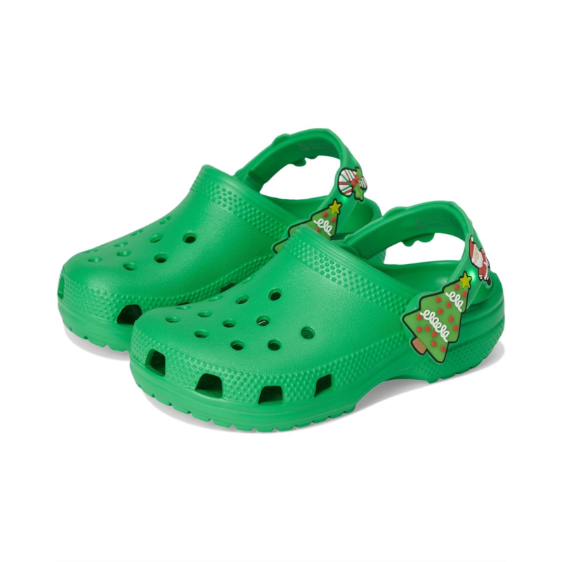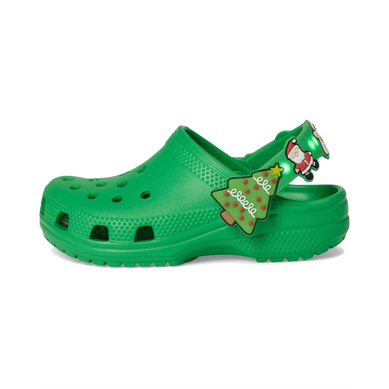 - Easy on, easy off! Just like the adult Classic, the Crocs Kids Classic Holiday Lights Clogs offer amazing comfort and support, thanks to the light, durable CROSLITE material and design. Kids can customize their Crocs clog however they like. The signature ventilation ports let feet breathe and accommodate JIBBITZ brand charms. A pivoting heel strap keeps the shoe secure during play.