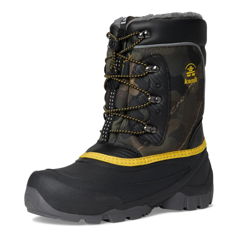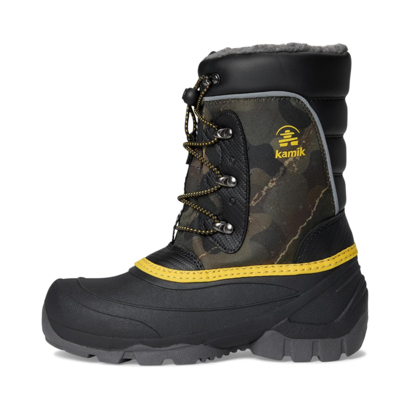 - Whether its an epic snowball battle, a quest to build the worlds tallest snowman, or a daring sled ride, Kamik Kids Luke 3 kids insulated boots have got your little adventurer covered. Snow and cold dont stand a chance against the waterproof nylon upper, adjustable collar, and cozy fleece insulation, so their feet stay bone dry and warm no matter what. With an easy-to-use bungee system, your kiddo can quickly slip them on, ready to leave their prints in the powder!