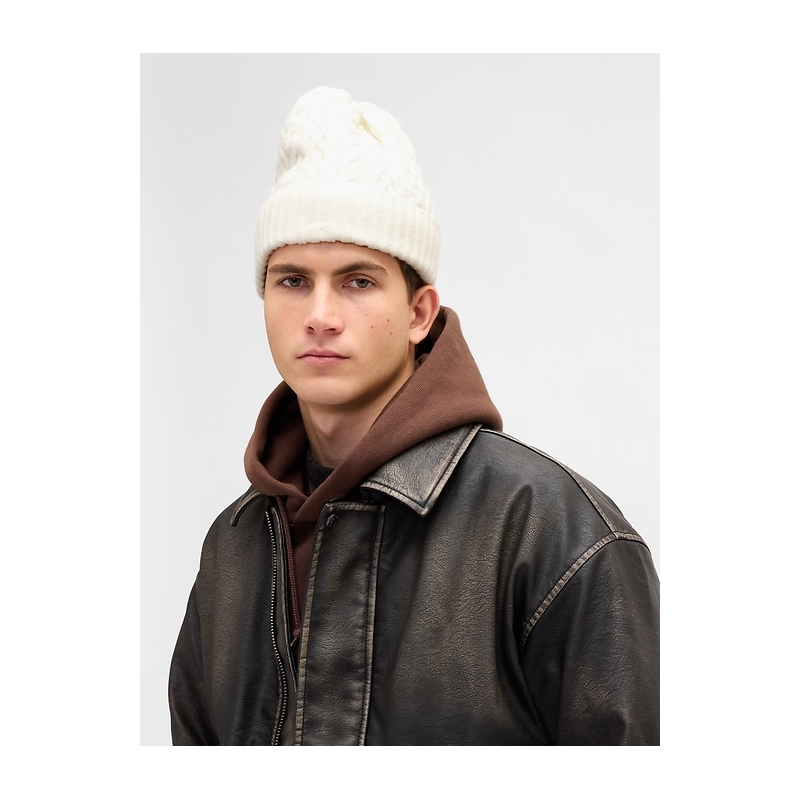 - Supersoft cable-knit beanie.