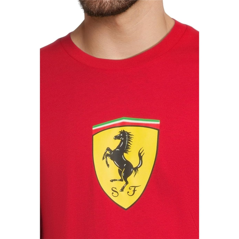 - Embrace Ferraris passion for performance and style with the Ferrari Sportswear Shield Crew. This dynamic piece is highlighted by the iconic Ferrari shield logo, proudly displayed on the chest. This pull-on style shirt features a ribbed crew neckline, short sleeves and a straight hemline.