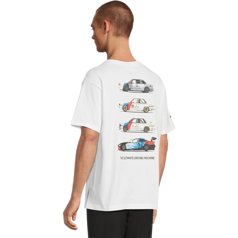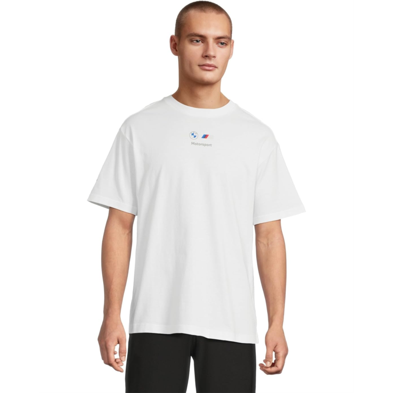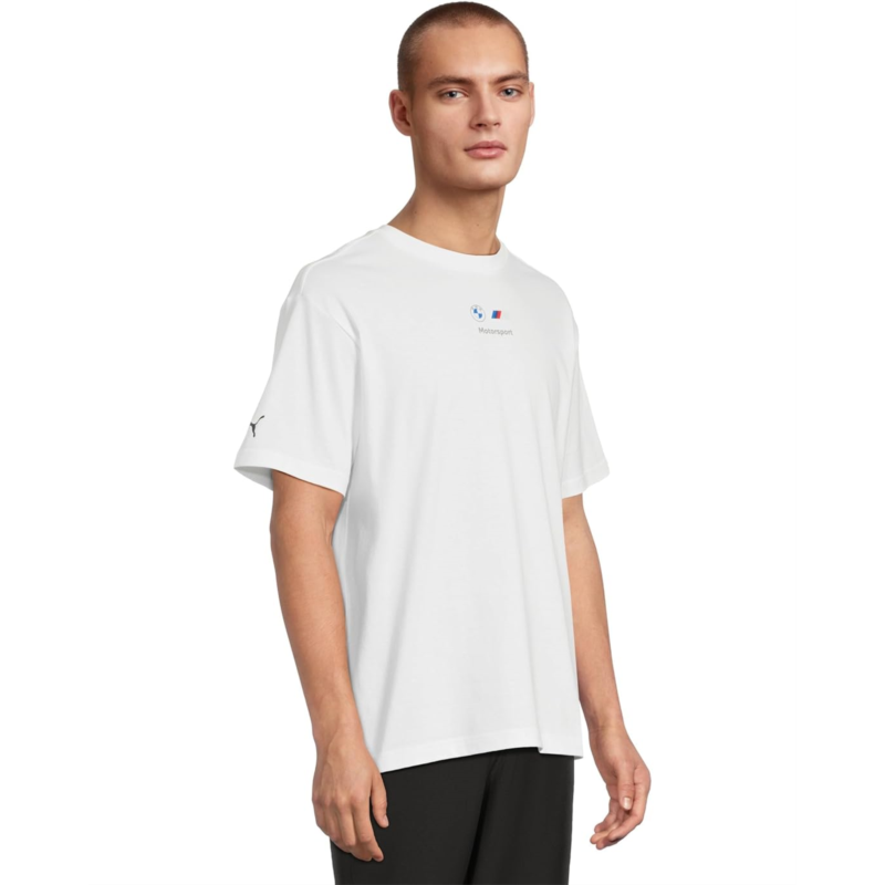 - Show your passion for racing with this exclusive PUMA BMW M Motorsport Graphic T-shirt, blending PUMAs athletic style with the prestige of BMW M Motorsport. Made with at least 20% recycled material, this graphic tee offers a comfy, non-restrictive fit that allows freedom of movement. Featuring a sleek, high-performance motorsport graphic, this T-shirt showcases the power and elegance of motorsport, making it a must-have for car enthusiasts and speed lovers. It is styled with short sleeves, a crew neckline, and a straight hem. The PUMA logo of the tee adds a touch of athletic authenticity to this T-shirt, blending PUMAs sporty style with BMW M Motorsports racing heritage.