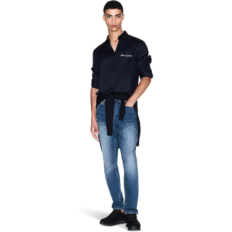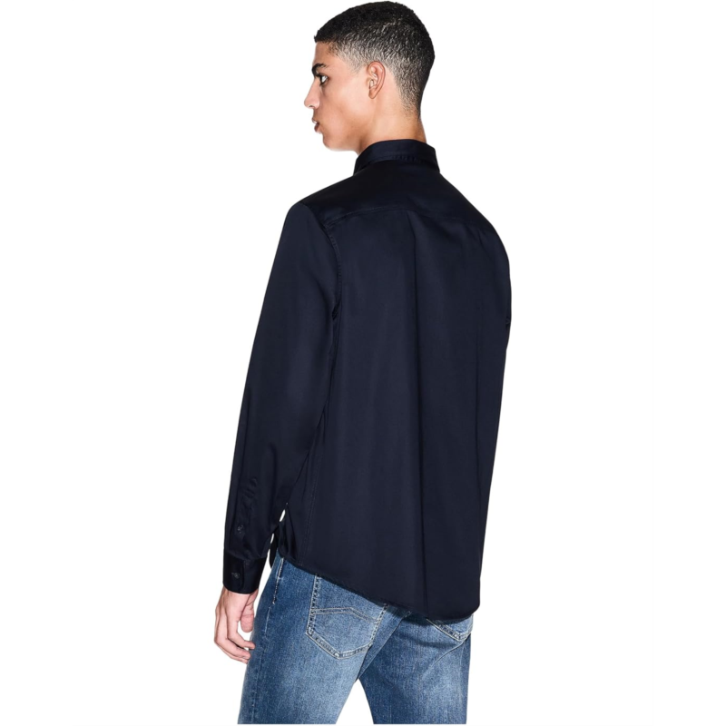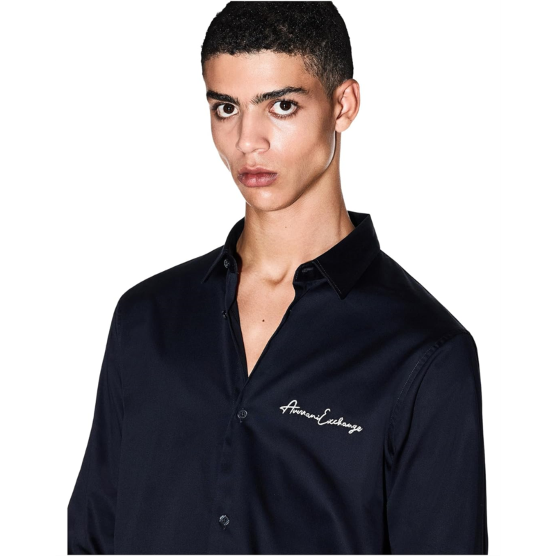 - The Armani Exchange Script Logo Button Down shirt is a wardrobe essential. Made from a cotton blend, it feels soft and luxurious. It features a collared neckline, a buttoned front closure, and a signature AIX Logo on the chest.