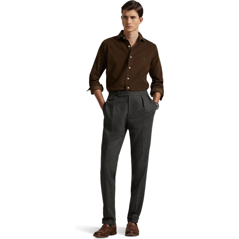 - Step out full of style in the Polo Ralph Lauren Classic Fit Corduroy Shirt that is crafted with a fine-wale corduroy fabric that features a tartan pattern and several winter-themed iterations of the iconic Polo Bear.