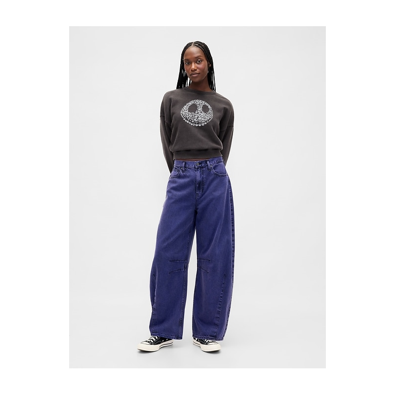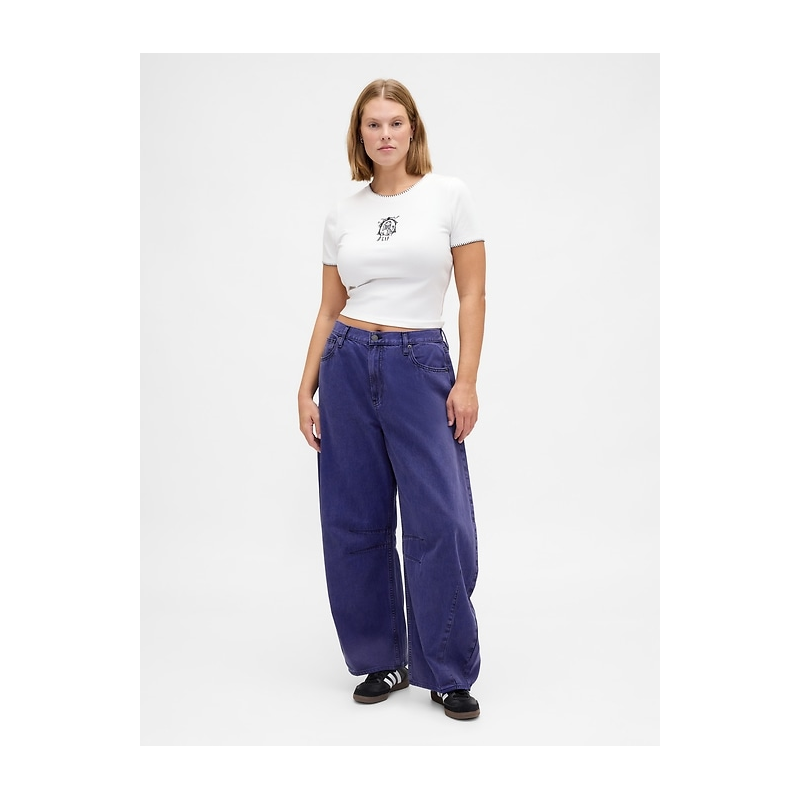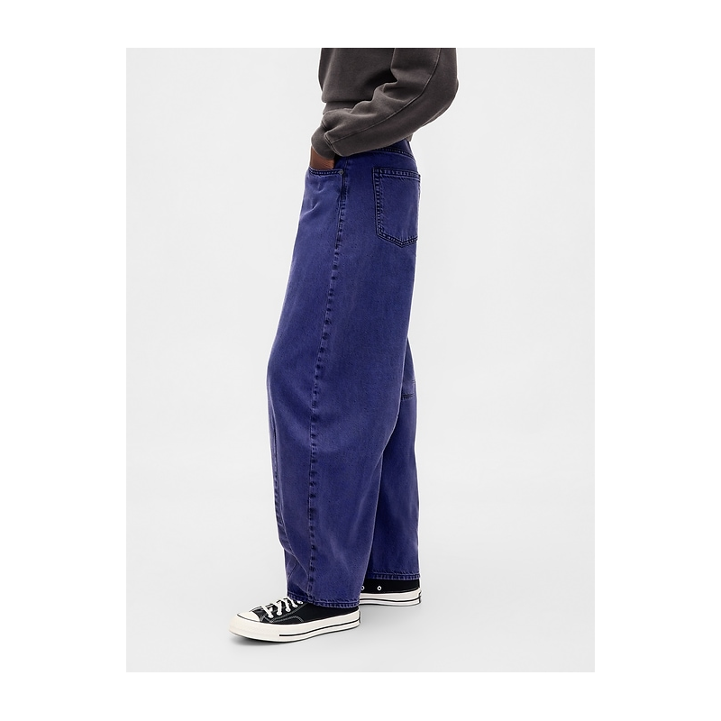 Fit:A full-length barrel jean thats fitted at the waist with a relaxed leg and tapered ankle.