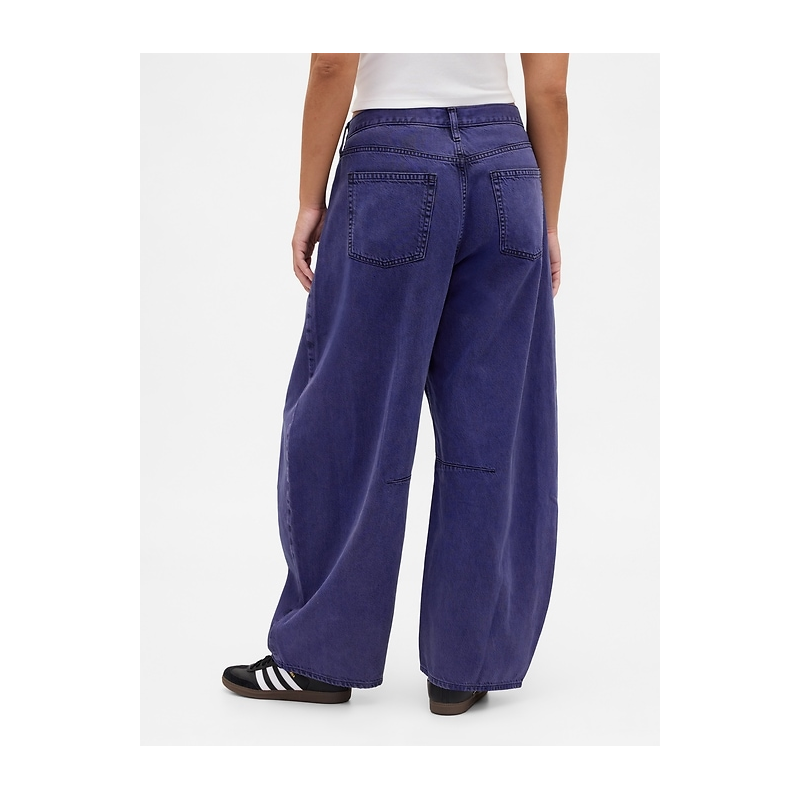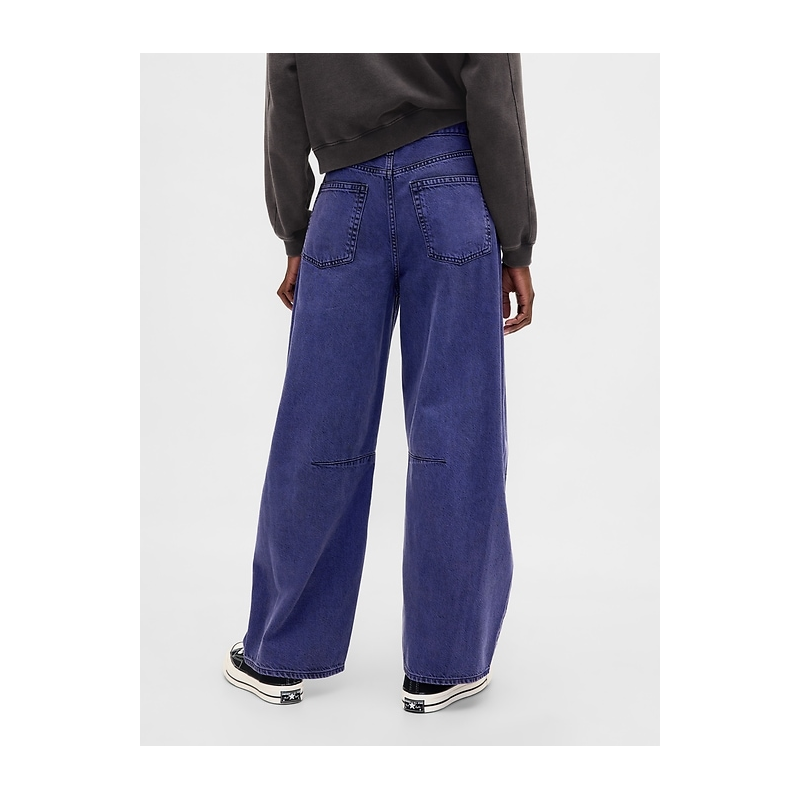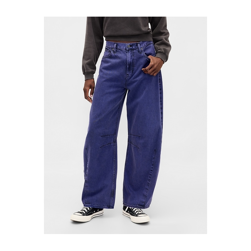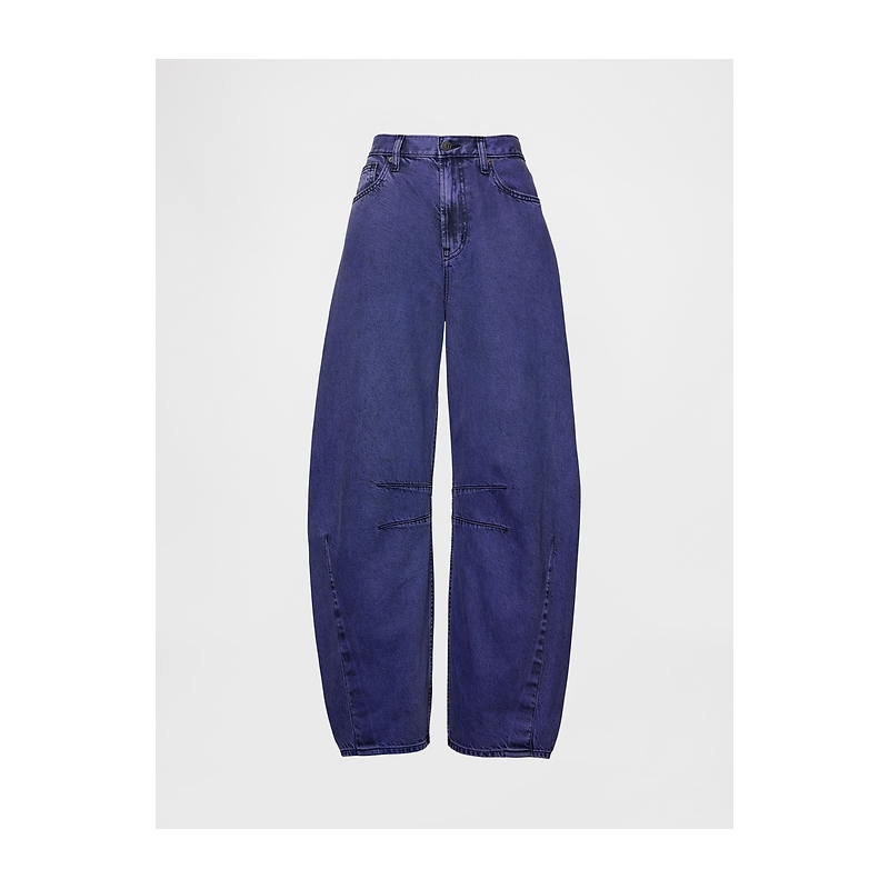 Look:A classic five-pocket barrel jean in a iris blue wash.