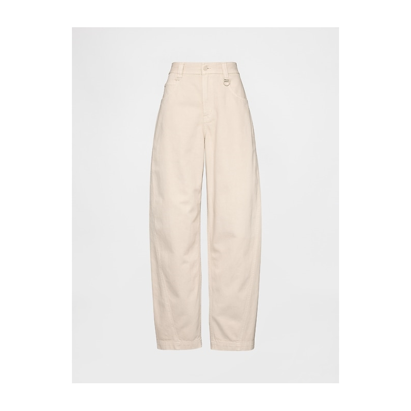 - Fit: A full-length barrel jean thats fitted at the waist with a relaxed leg and tapered ankle.